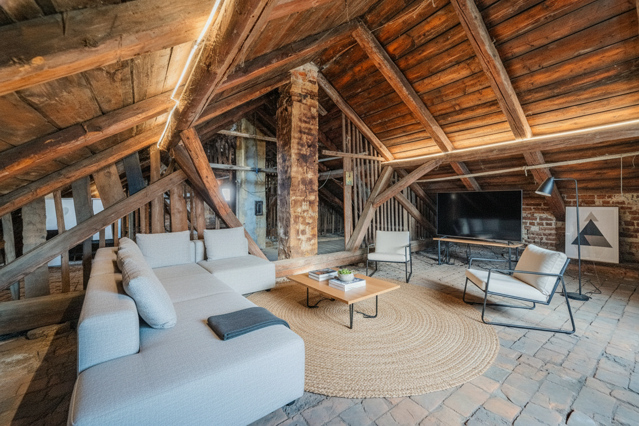 exterior shot can you change the dining table in the image to the table in the mood board the existing table is 1 45x0 9m but the table in the image is 2 13x 0 91m change the curtains to cream ans black stripe and add a cream and black rug