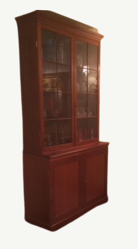 turn this mahogany cabinet into bleached mahogany with dark blue wallpaper inside the cabinet