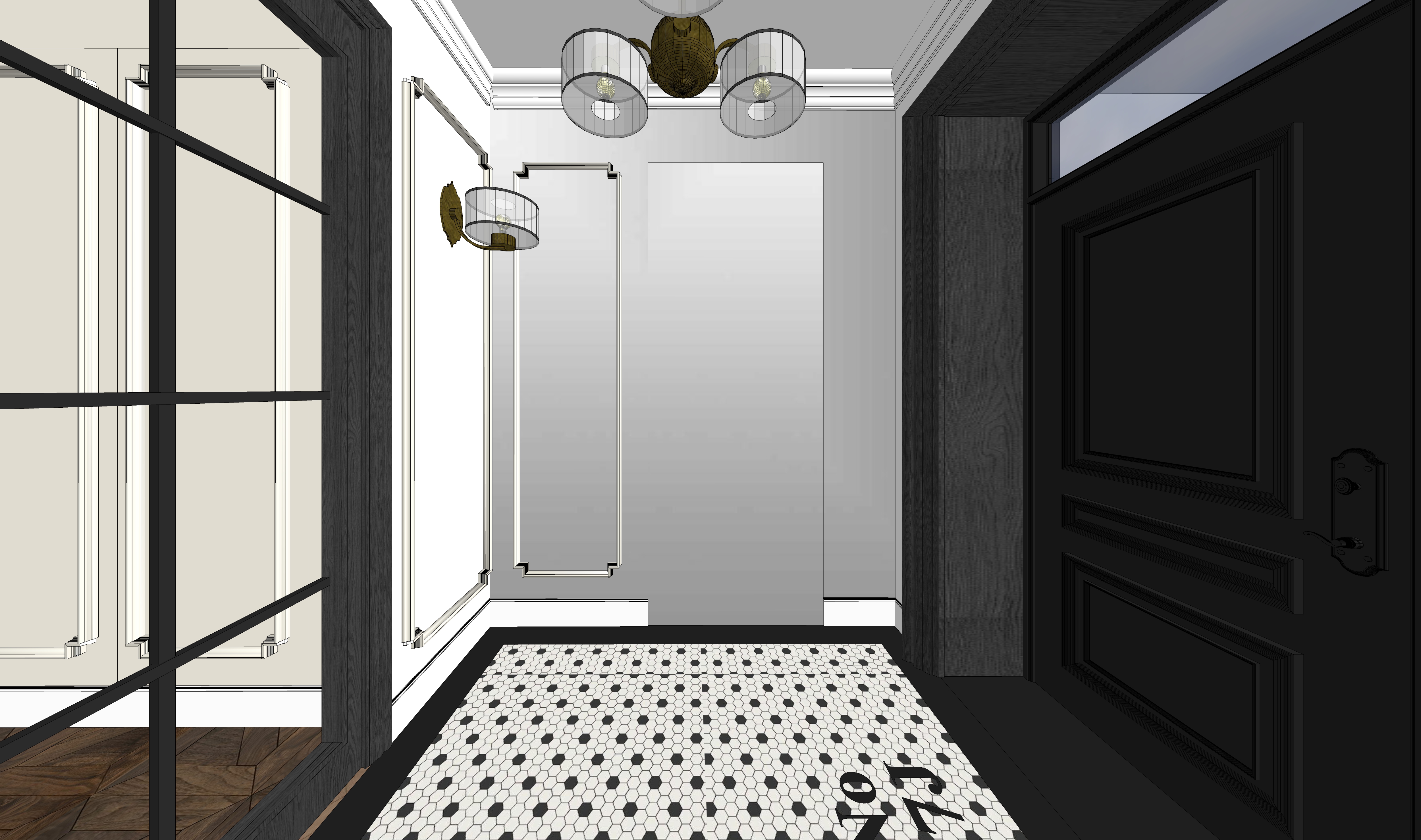 br zowe lustro na ukrytych drzwiach i cianie drzwi drewniane czarne