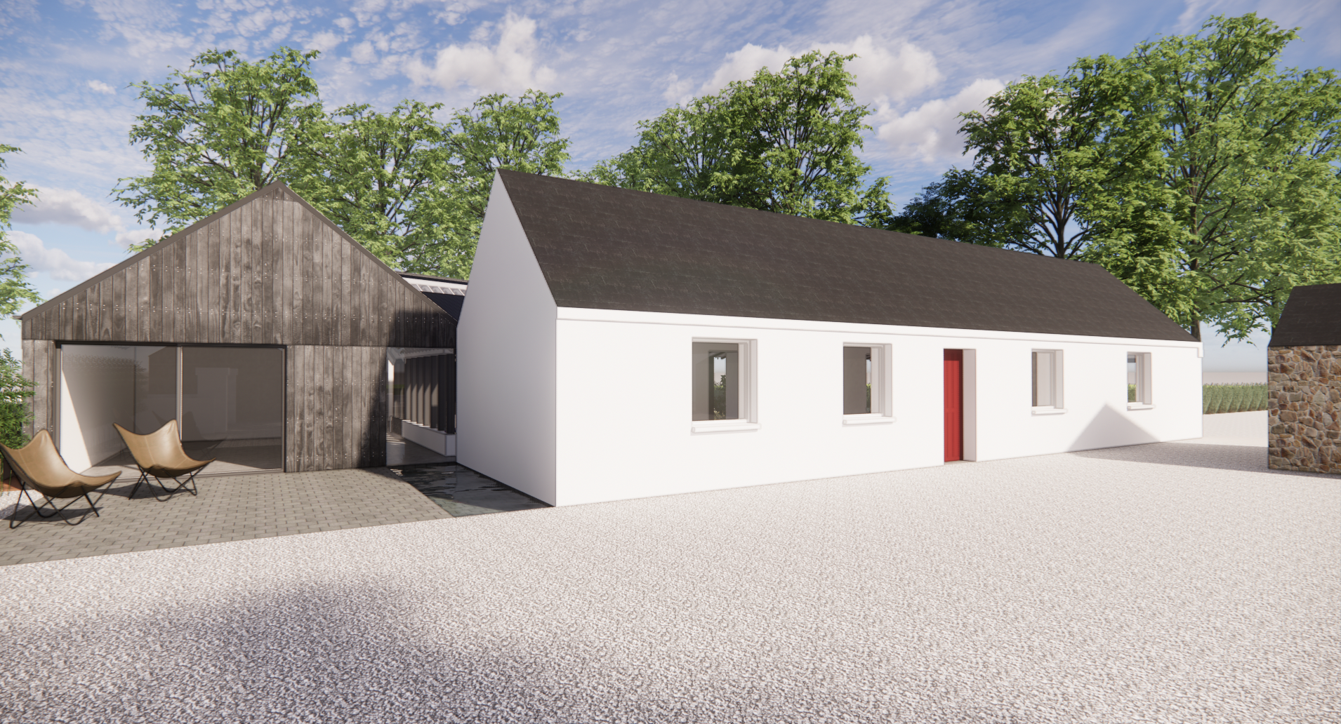 modernist exterior shot black vertical cladding on extension to a white rendered house with black slate roof architecture