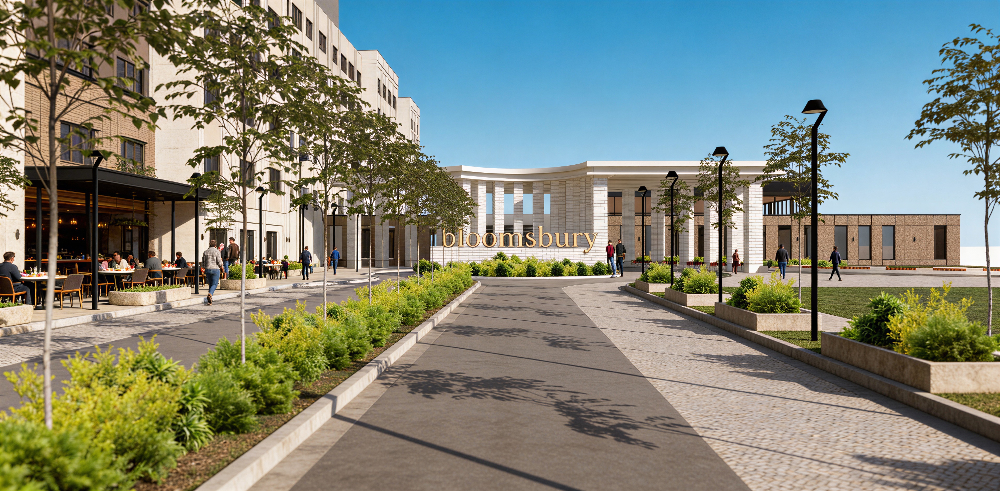 make into night scene add uplighting to columns and buildings inviting resort entrance