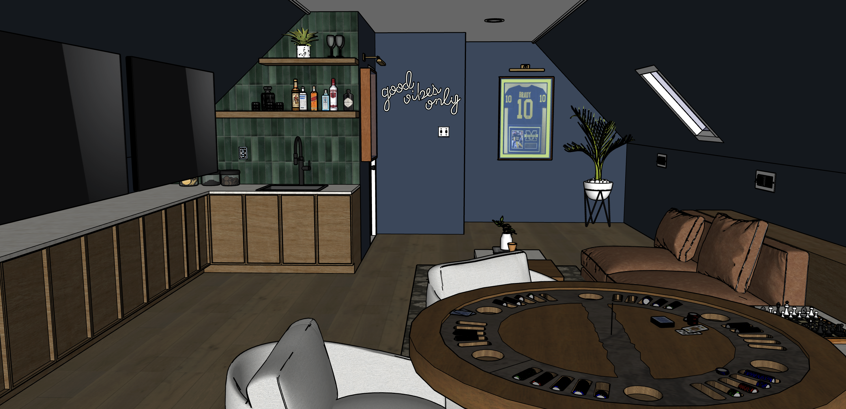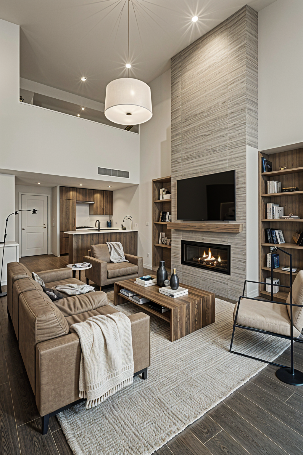 interior bright day time natural lighting soft shadows space is evenly lit down lights and pendant lights on white light 5000k lighting temperature interior photography realistic slightly reflective