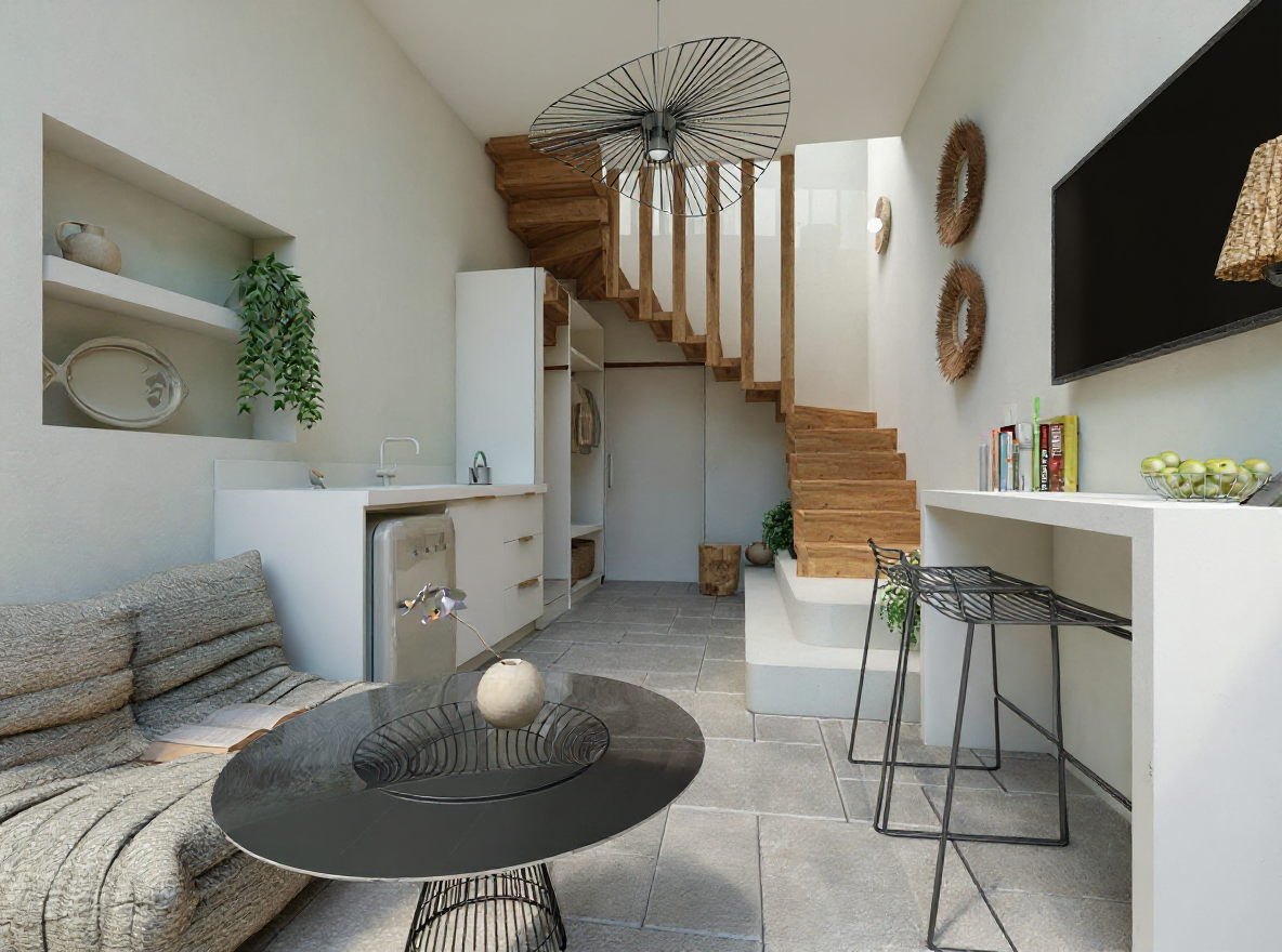 render a picturesque european street scene with classic architecture buildings are painted in a soft cream color with grey trim and red brown tiled roofs the street is paved with cobblestone in shades of cool grey large windows reflect a clear sky with gradient hues of light blue the atmosphere is calm and serene evoking a peaceful afternoon setting