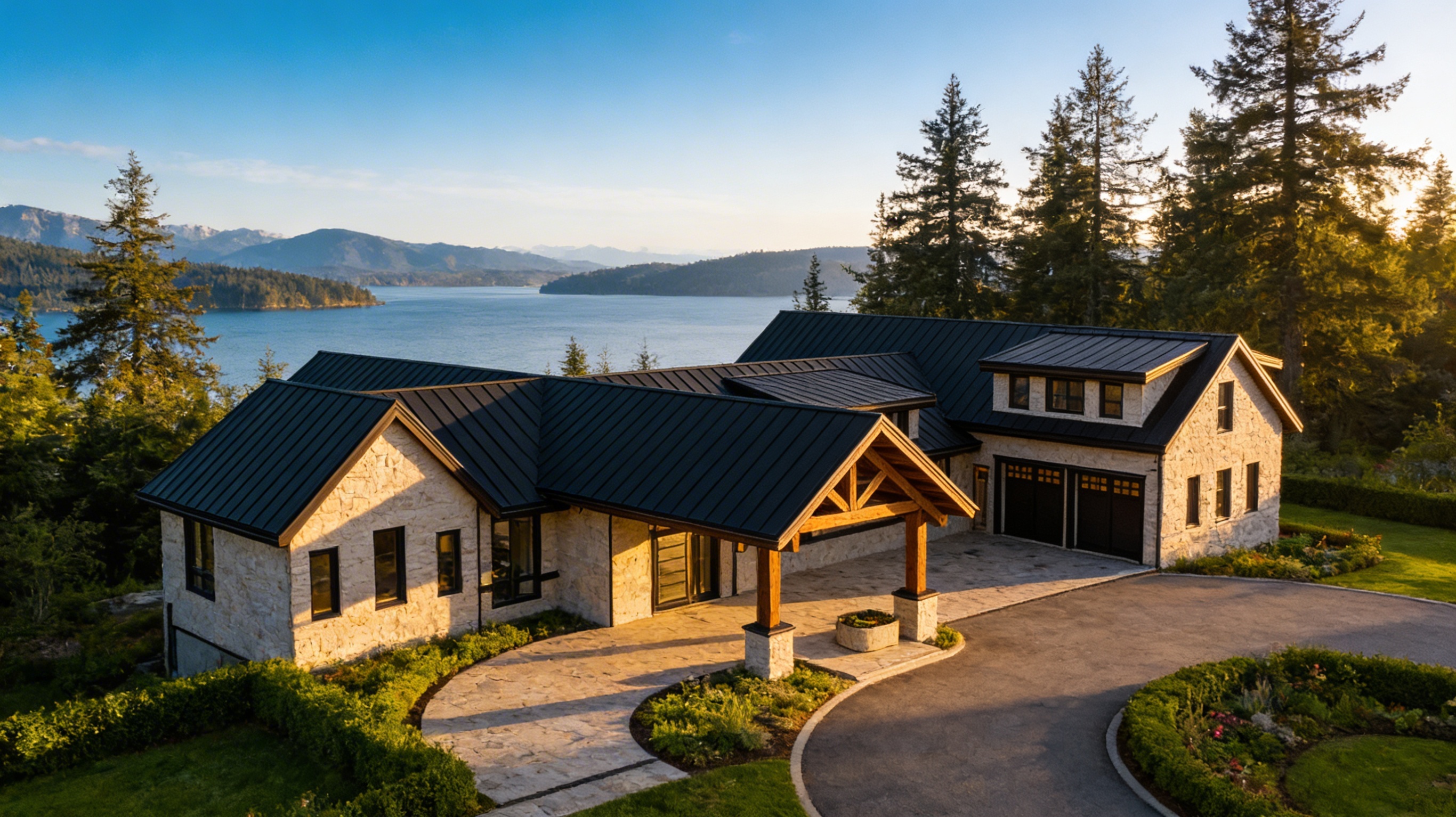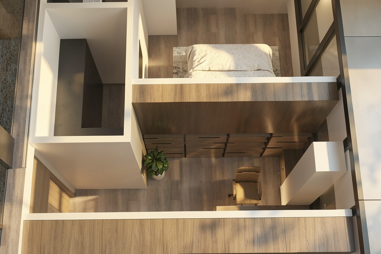 create a photorealistic 3d visualization of the uploaded elevation dont change the design just ad a nice atmosphere with a nice frontyard
