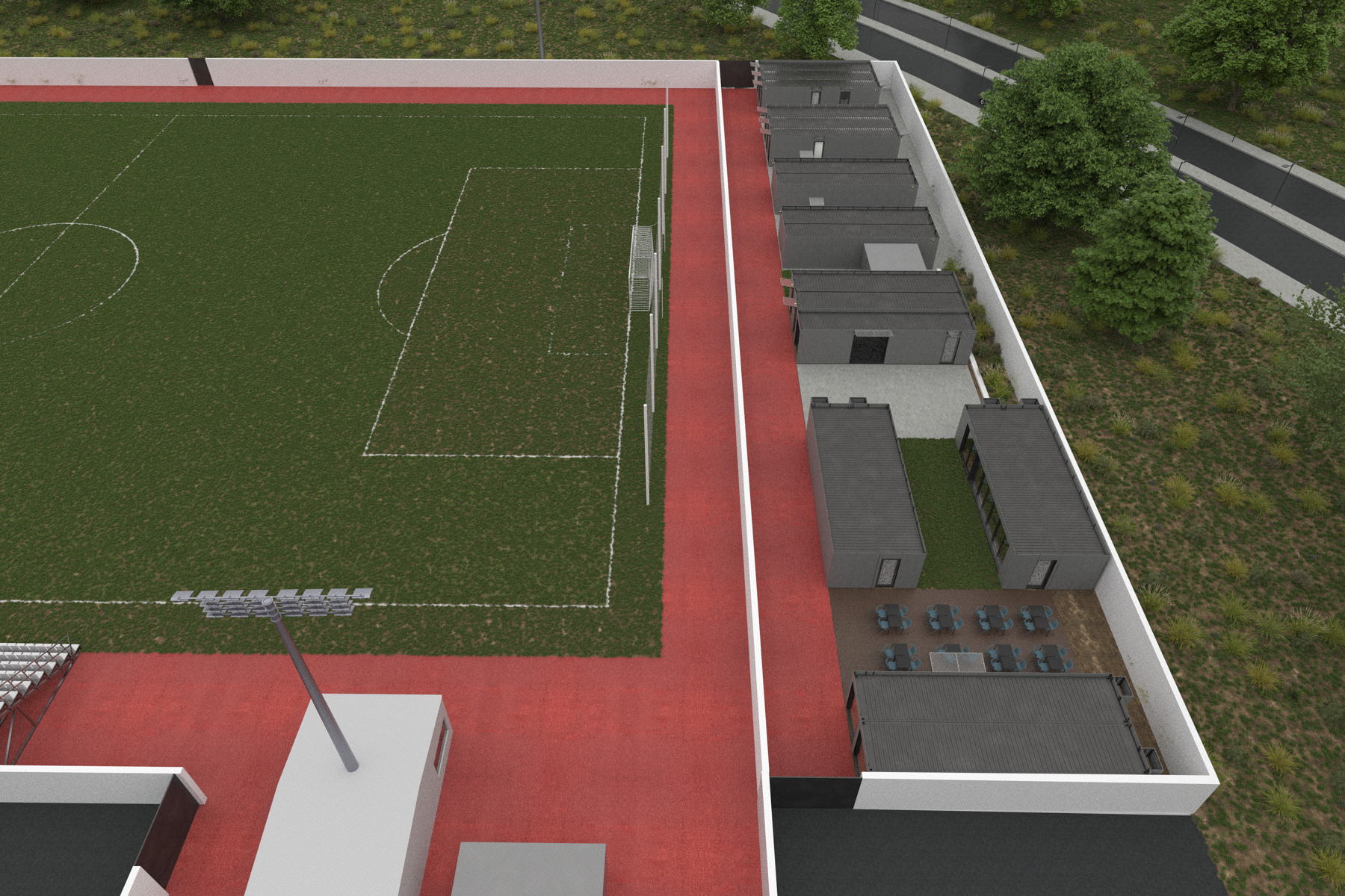 tornar o campo de futebol com relva mais realista aprimorar os materiais e tornar o render como uma foto sem mudar as cores e geometria quero uma ilumina o super realista e a vegeta o tamb m manter o original apenas aperfei oar manter a cor cinza do topo dos contentores e manter a modela o original do topo dos contentores em todos os contentores faltou o que estava no lado esquerdo e os dois do lado direito a relva esta pouco realista e est alta tornar mais realista ainda o resto est bem excepto no canto esquerdo inferior que n o tem vegeta o mas alcatroado