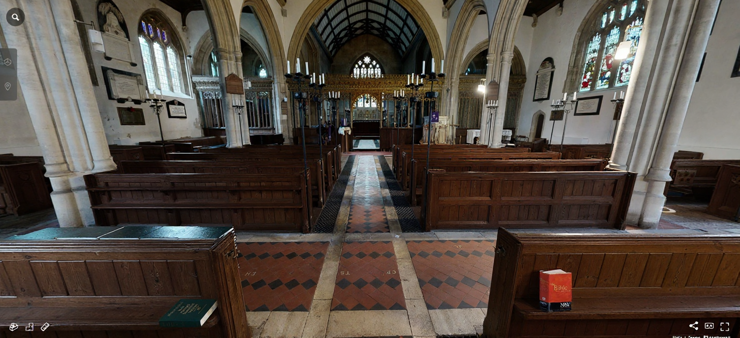 add a brass lighting chandelier to this image of a church interior dont change anything else