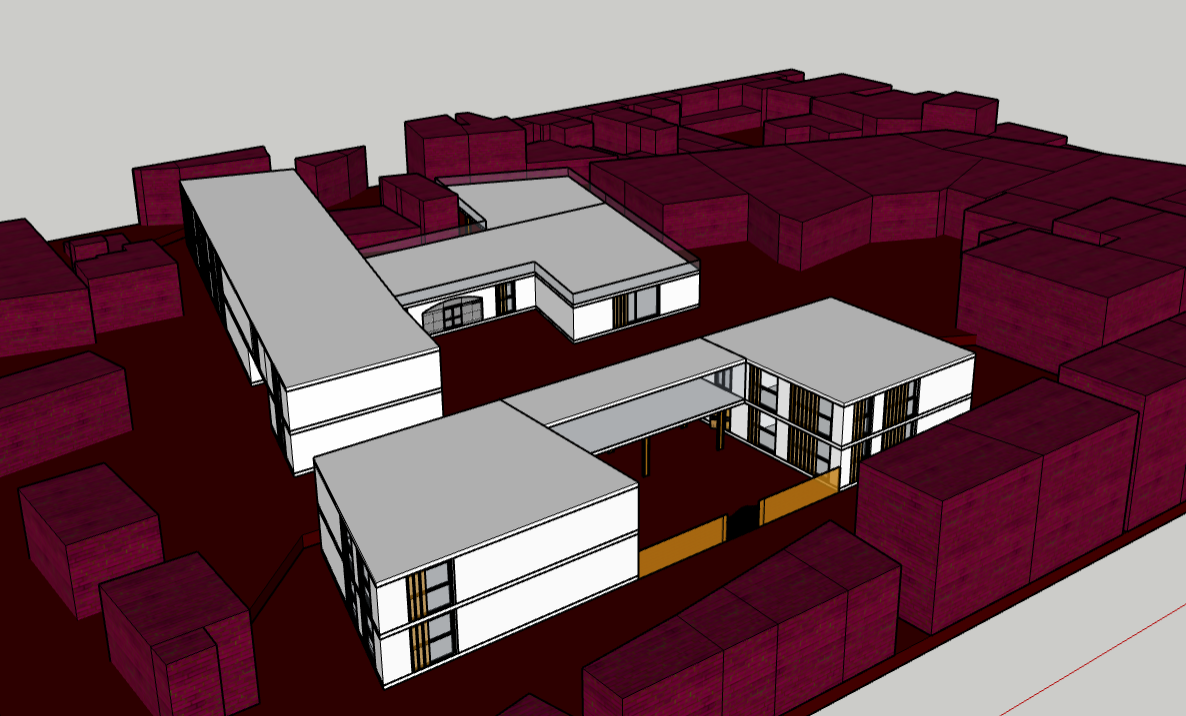 contemporary perspective shot render during sunset with concrete beige walls architecture