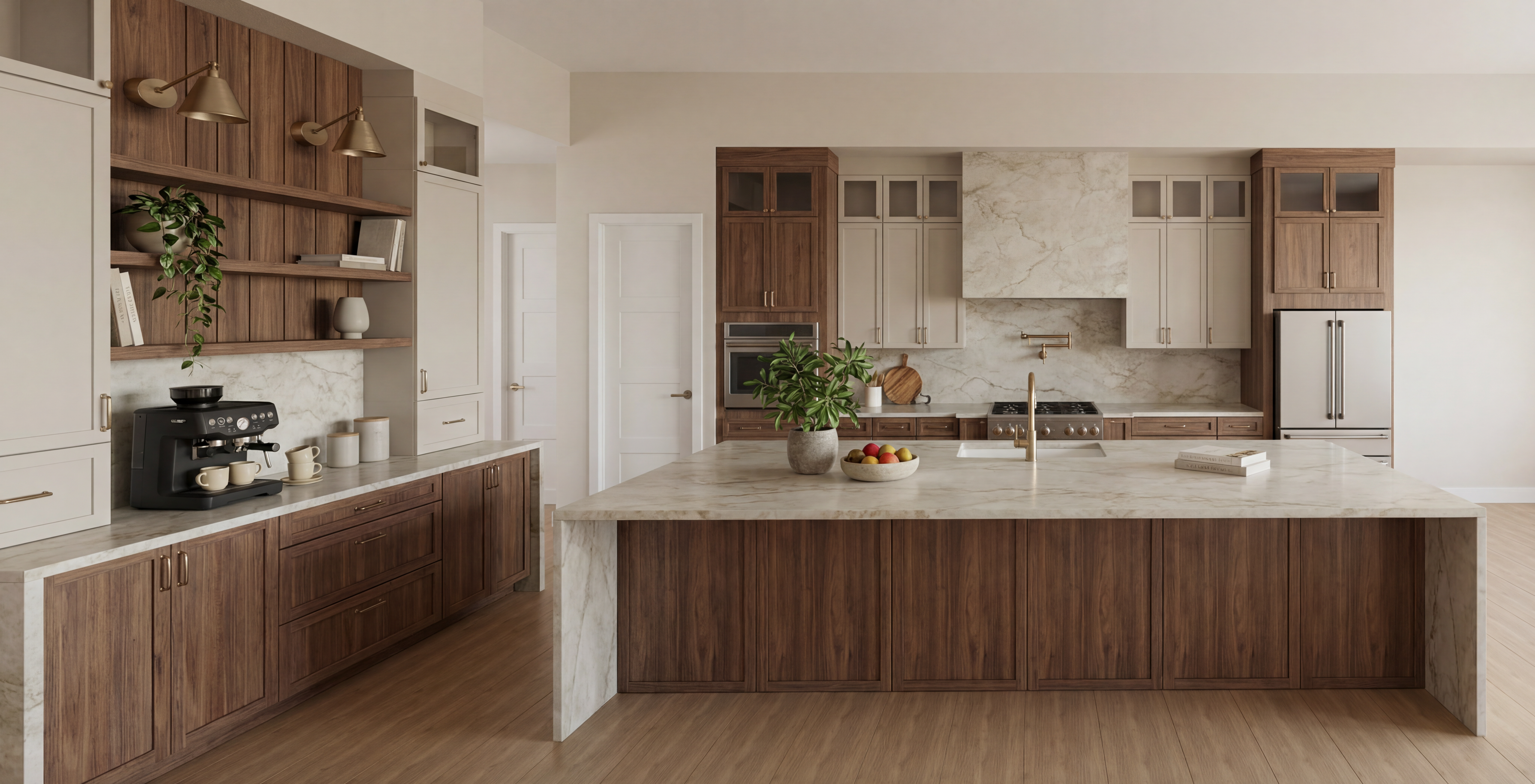 walls and ceiling are warm off white limewash vanity stone is soft muted light emerald quartzite vanity cabinetry is a soft muted mid tone timber not dark not light bed head wall is a freeform stone cladding glass door is bronze frame with flemished textured glass insert golden hour moody turn bedside lamps and wall sconces on bedside lamps are rice paper wall sconces are an amber toned murano glass