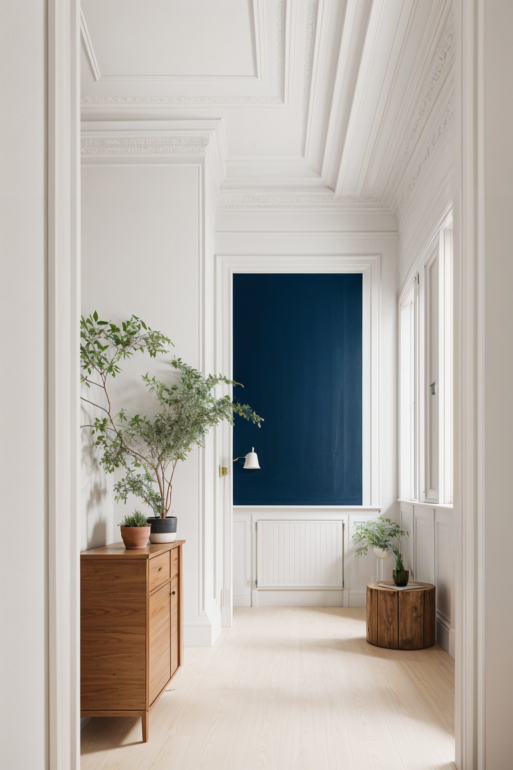 futurism interior shot modern and clean style living some lights wood floor plaster walls design some decorative plants architecture