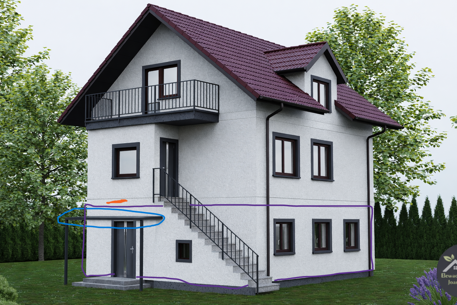move the upper edge of the canopy above the entrance marked in blue to the level marked in orange to the height of the building marked in purple change the plaster to light gray do not change the shape of the building surroundings or lighting