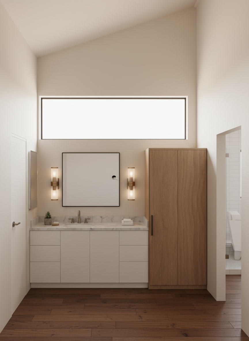 a beautifully designed interior space with a warm and inviting atmosphere soft golden hour lighting streaming through large windows creating gentle shadows and highlights the room features natural materials such as wood linen and stone with a harmonious color palette of warm neutrals beige terracotta and soft browns cozy furniture with plush textures layered textiles and subtle decorative elements like plants books and ambient lighting cinematic composition ultra realistic high detail global illumination soft shadows volumetric light 8k resolution photorealistic rendering interior photography style depth of field clean and elegant design