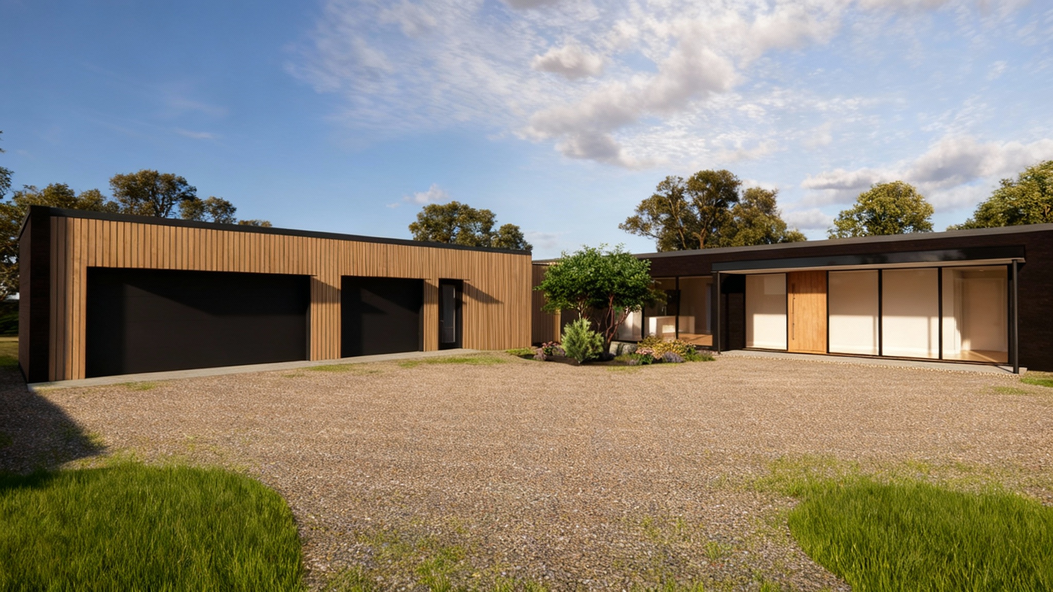 make siding wood grain and stone base with red roof