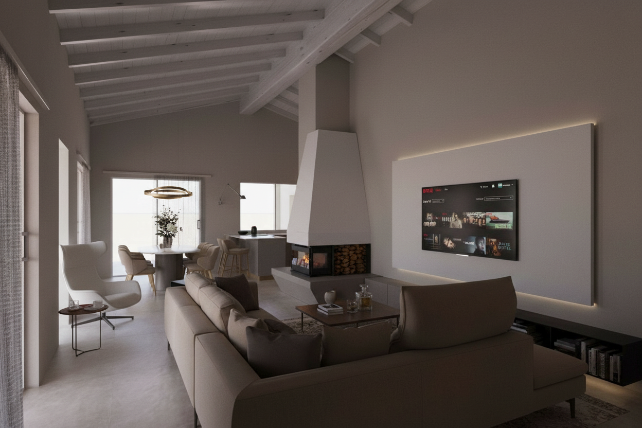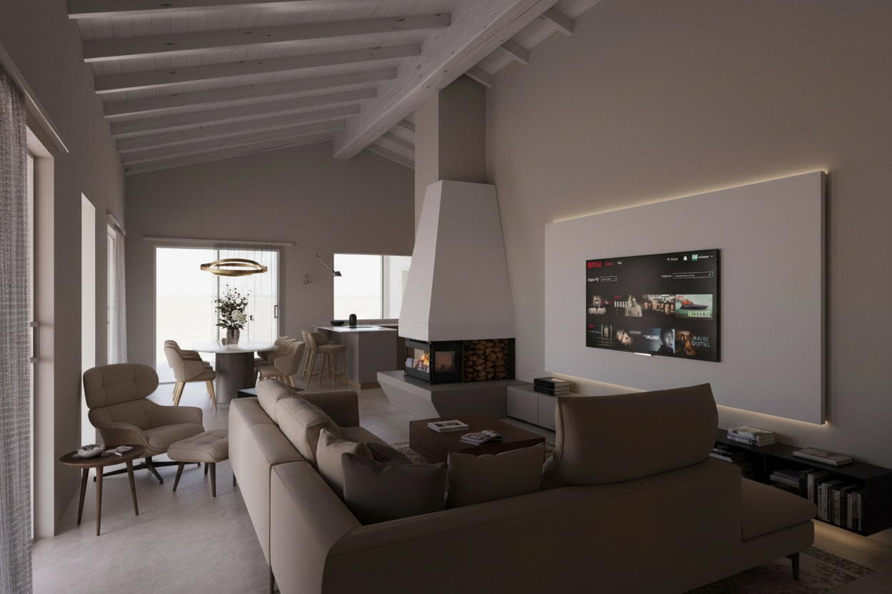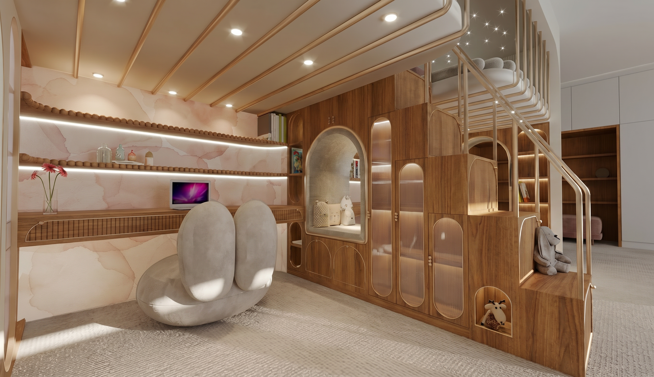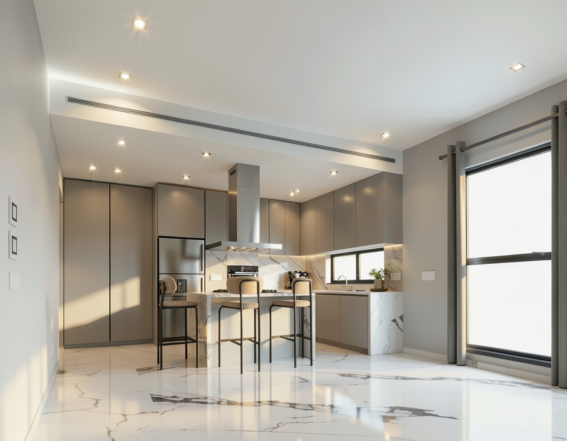 remove strip light above cabinets at the intersection with ceilings rearrange and add more spotlights with no glare to ceiling and suttle light