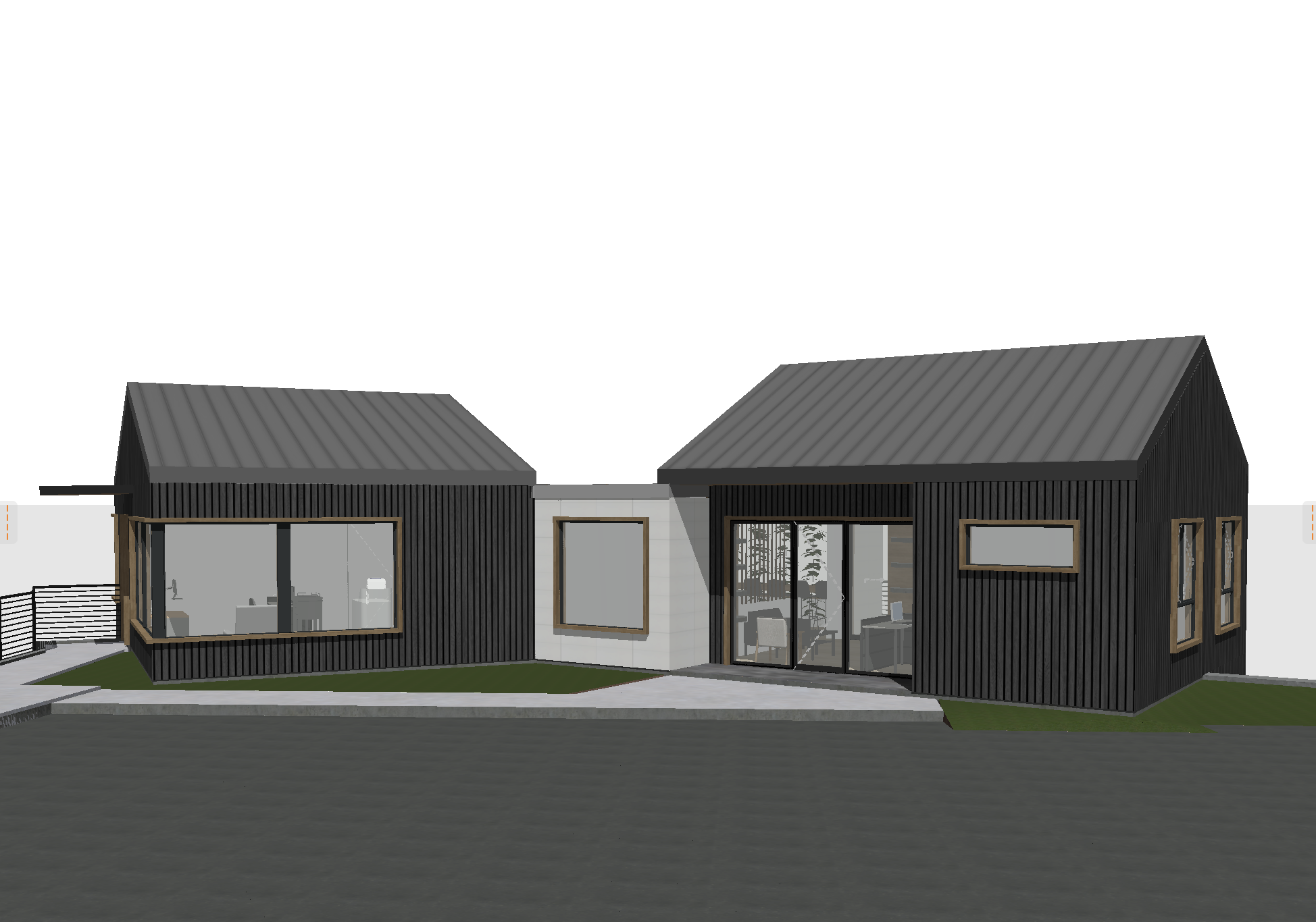 add plants and a blue sky no people no trees on the left side of the building make the road continue in front of the building