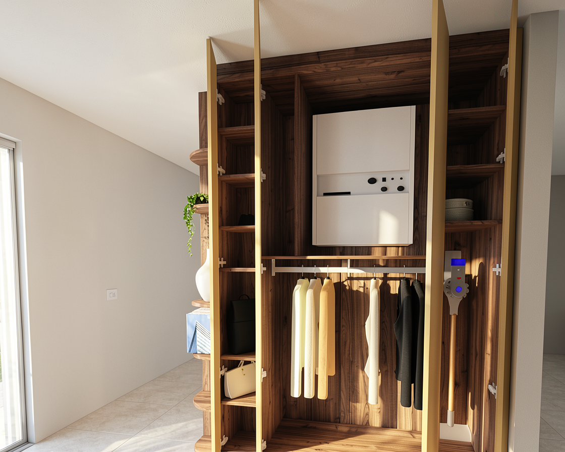 modern interior shot crea un render fotorealistico di questa vista 3d si tratta di una cucina in stile moderno al centro c una piccola isola con piani induzione e piano di lavoro in marmo grigio con venature bianche i mobili a tutta altezza sulla sinistra sono grigio beige e in questi mobili si trova anche il forno i mobili della parete finestrata sono color legno scuro e caldo con il piano di lavoro in marmo grigio con venature bianche il pavimento in gres effetto terrazzo moderno architecture
