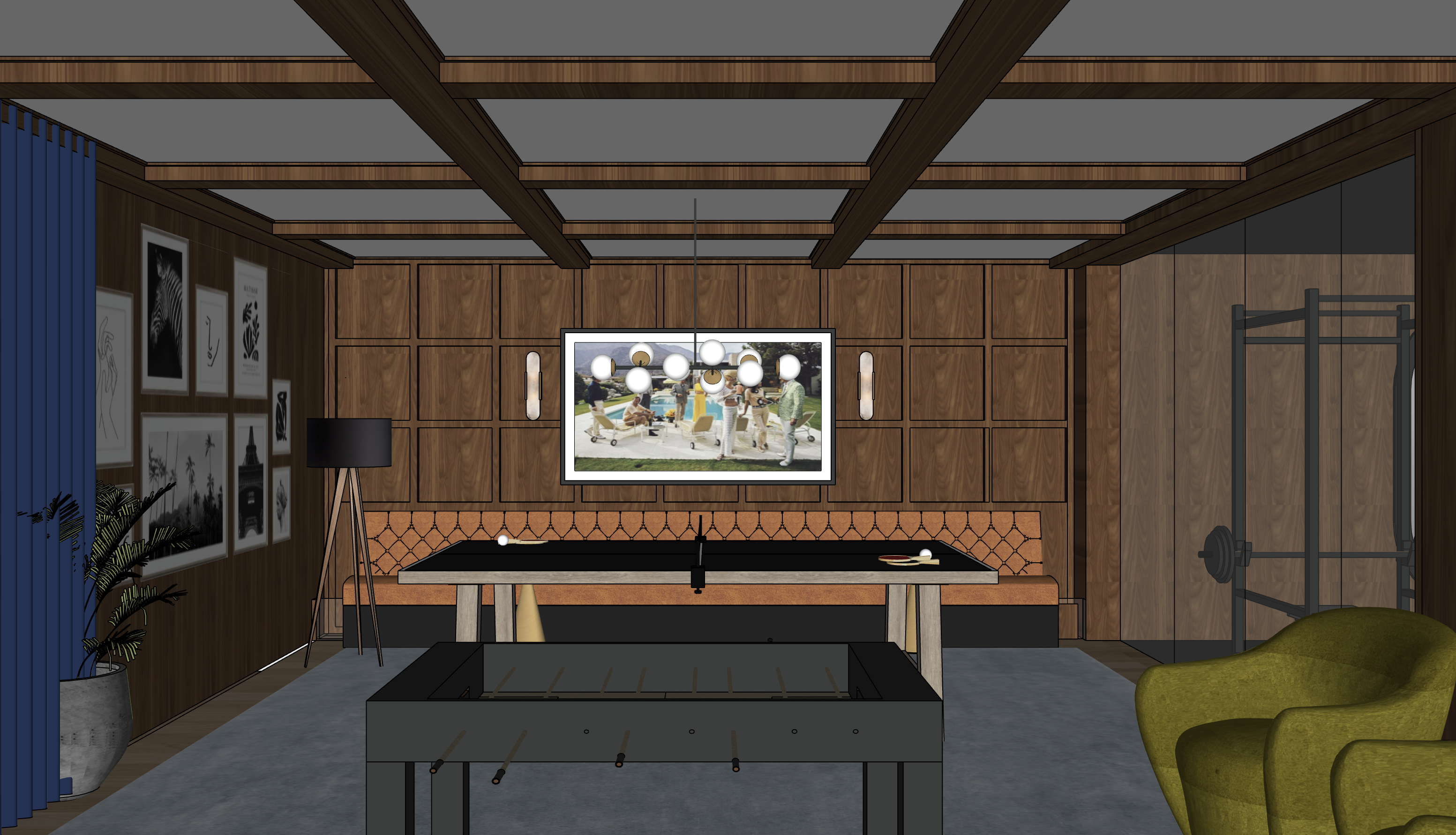 turn this into a game room that is stylish and hip and masculine architecture