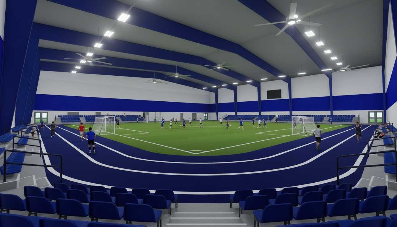 black roof white windows white vertical board and batten siding black metal rails on the deck white siding keep everything but remove deck and patio on the bottom level only no black siding make background farm field and make concrete patio on bottom level no black siding