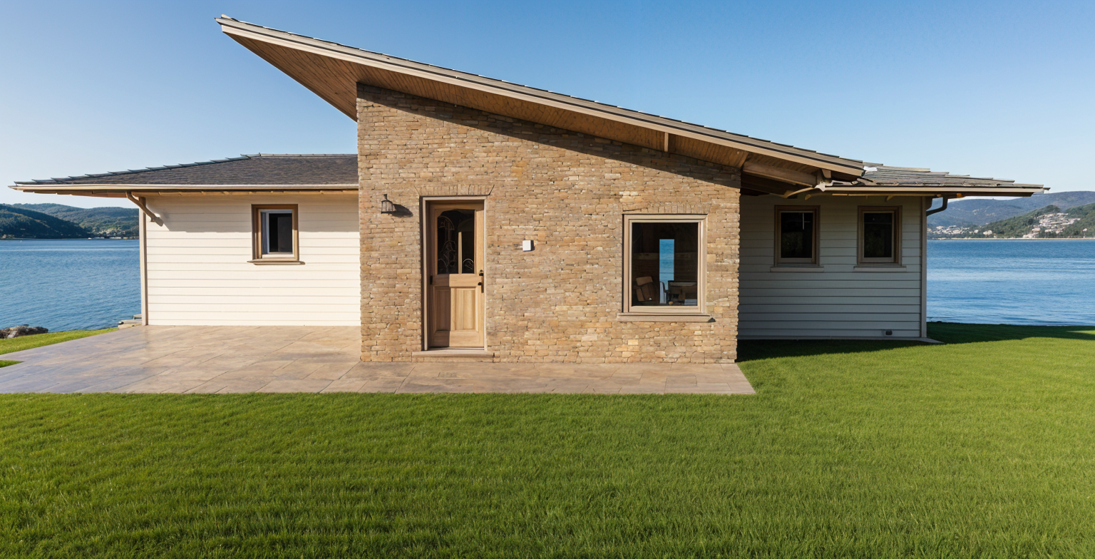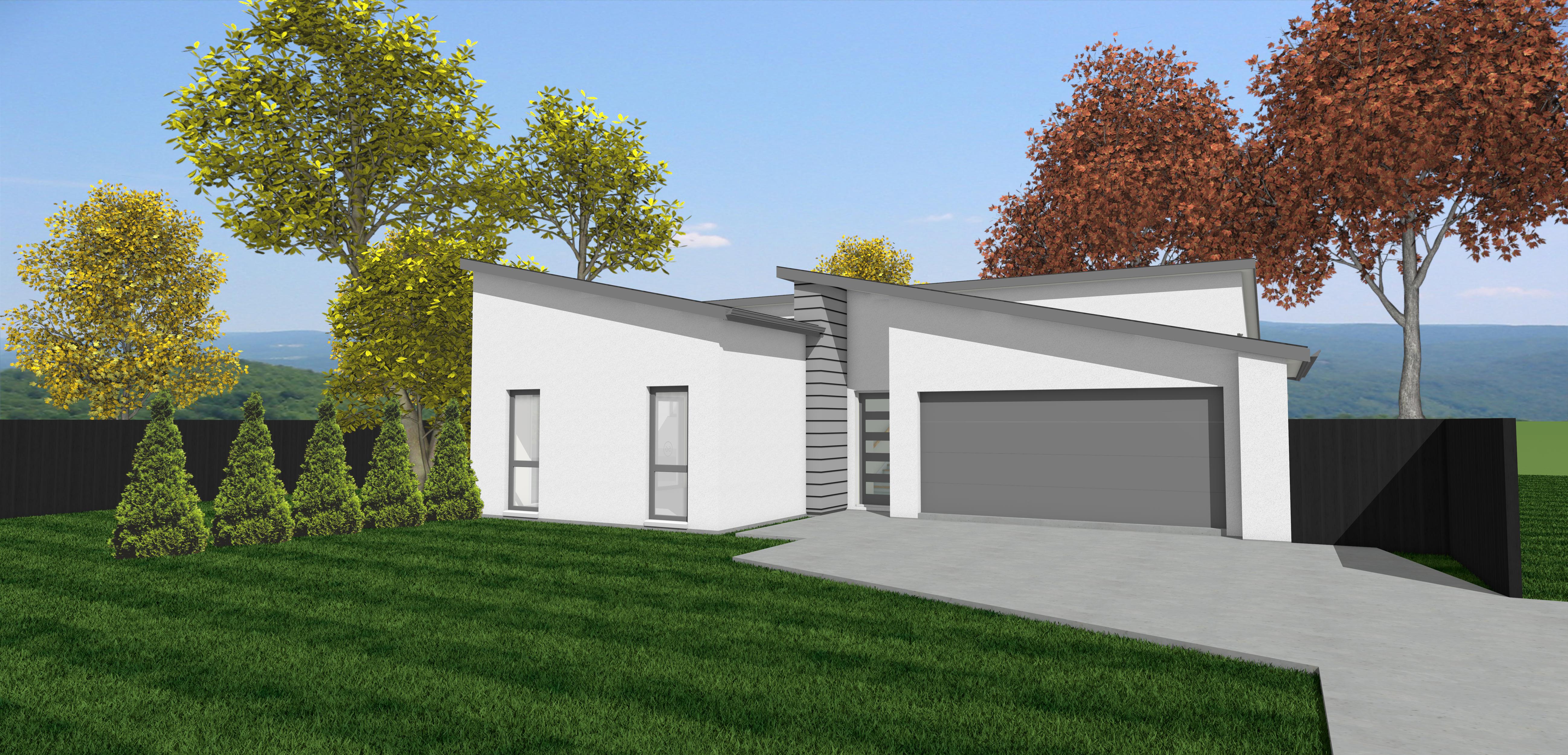make the grass short and add small shrubs make the roof facia and garage door black