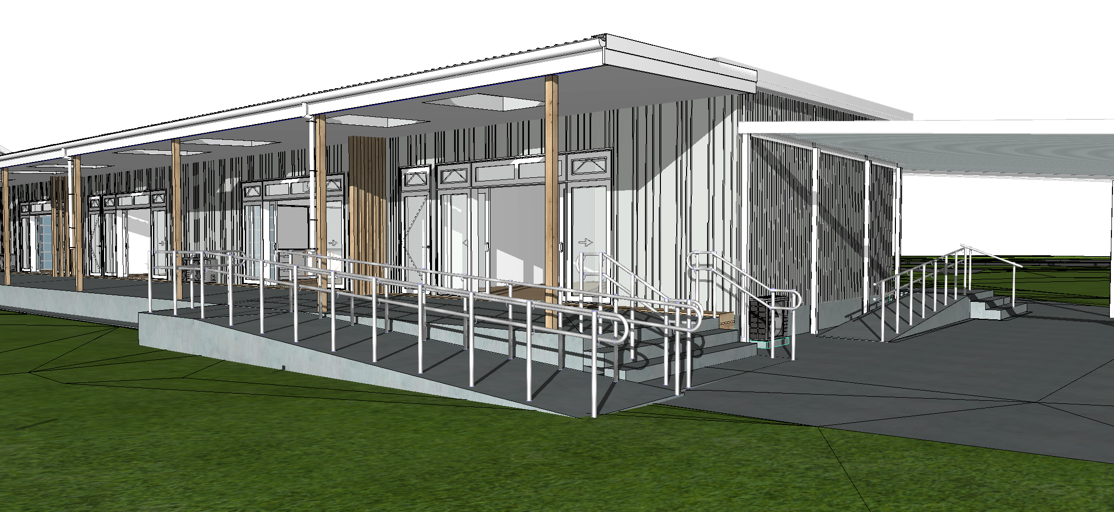 school classroom building exterior simple vertical cladding with light grey colour white aluminium joinery concrete verandah