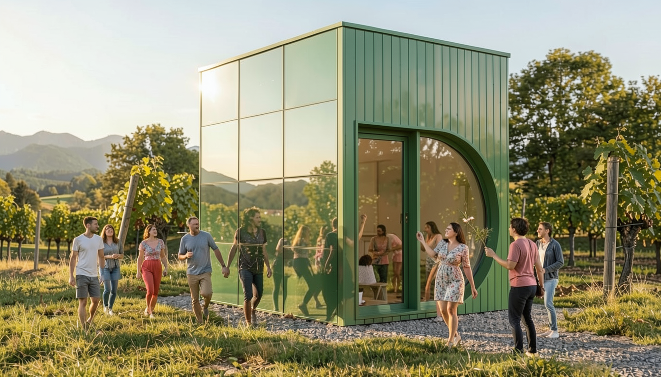 add 2 wine drinking people next to the box from left side