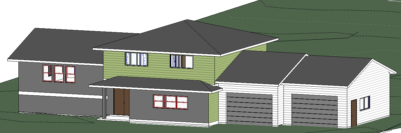make look realistic use natural lighting make day time add landscaping with plants shrubs flowers and surrounding trees asphalt shingle roof make the bottom half of the house grey rock leave the right side of the house as is