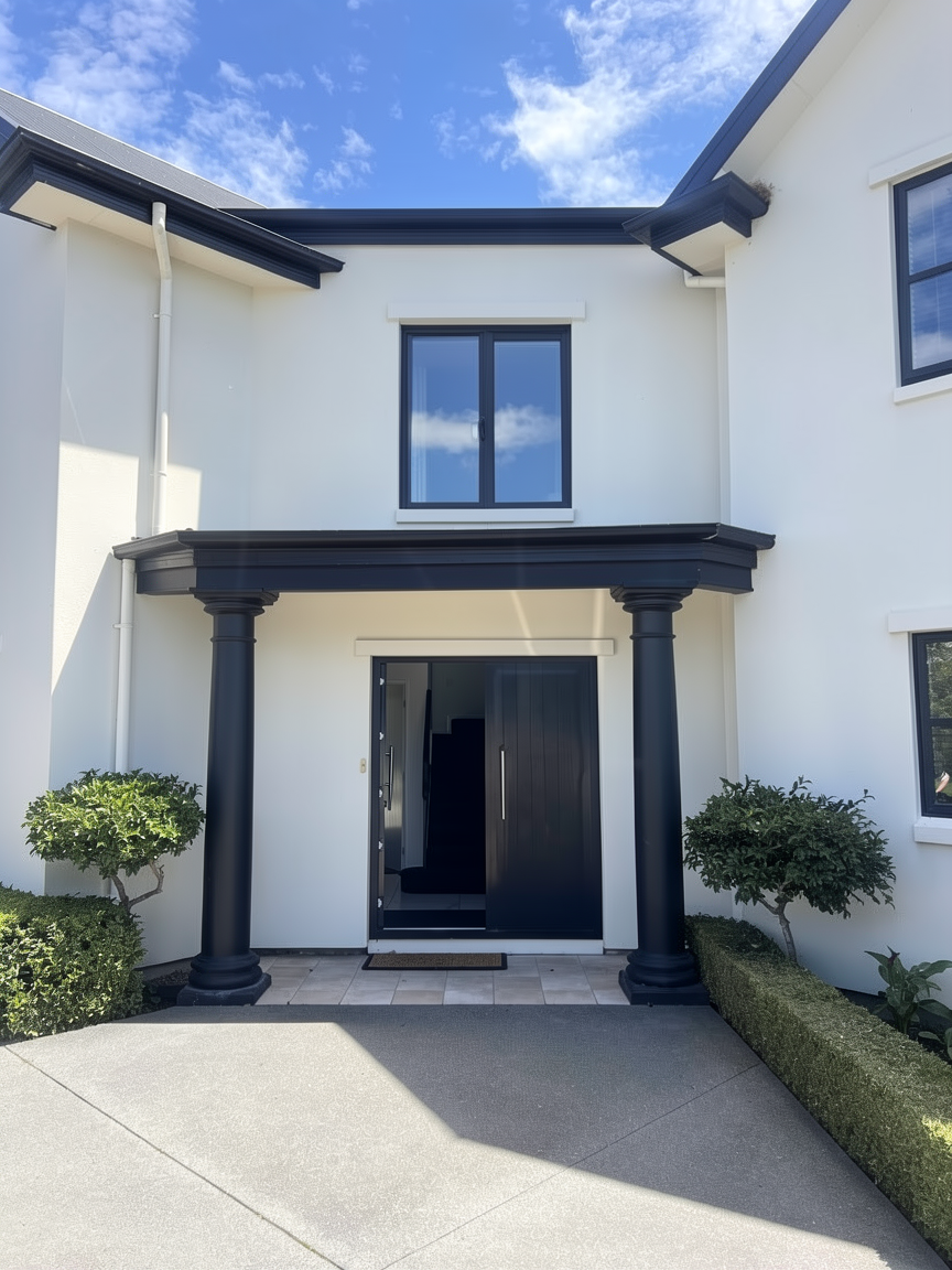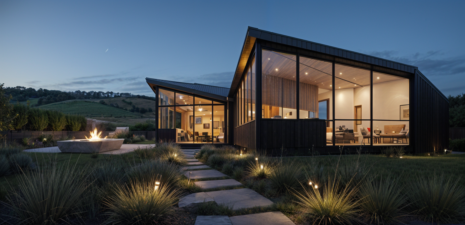 change siding to black change trim to black make posts cedar zoom out make this into a luxury resort spa inspired back yard with pool and gazebo teak furniture white cushions