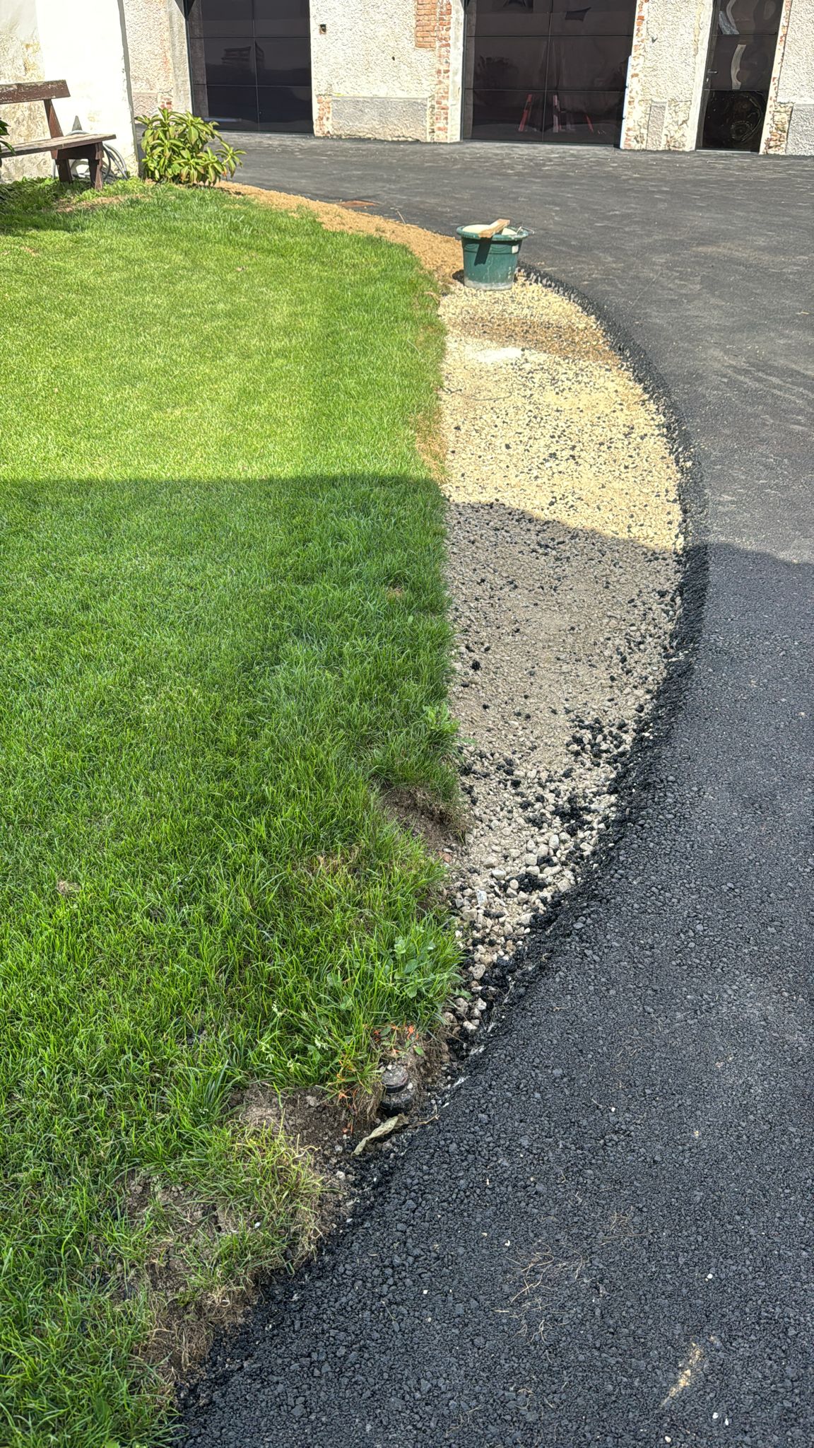 the gravel area should be replaced with a flower bed and filled with carrara decorative gravel 25 40 the bushes in this bed should be spherical and illuminated with three ground lights a mowing edge should also be laid for the lawn
