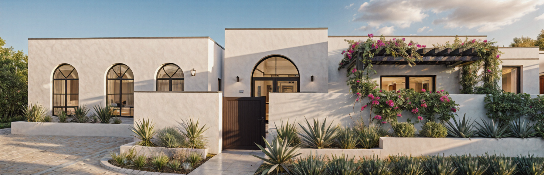 keep stucco smooth and white add edge banding to top of walls