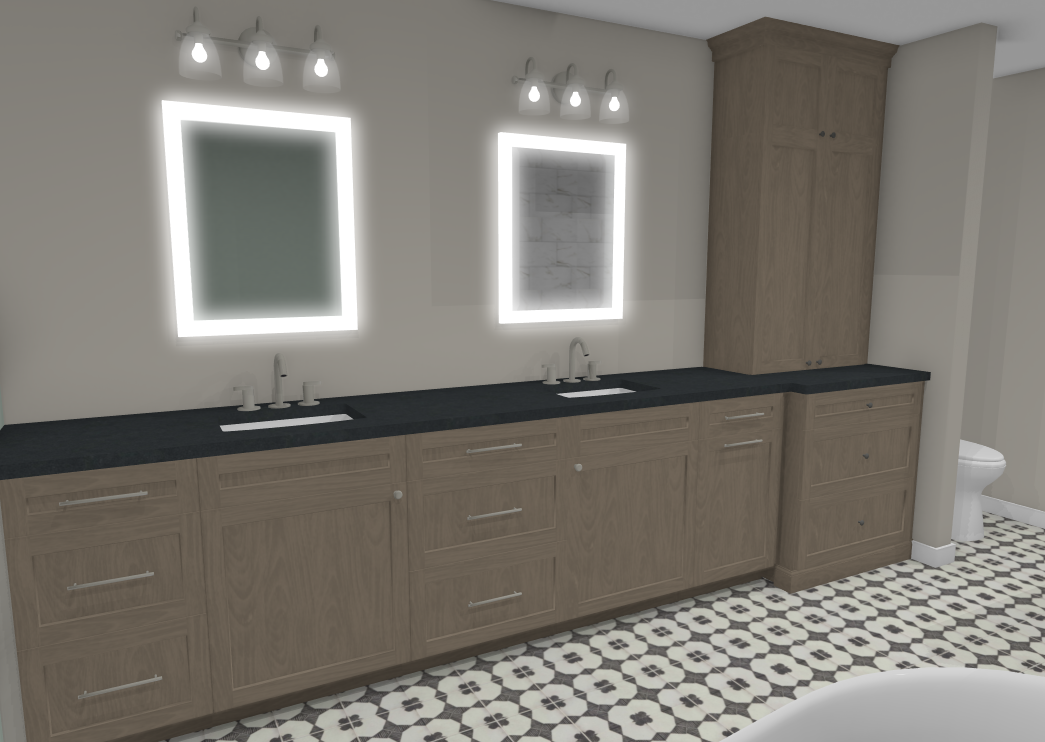 beige colored cabinets with a soapstone countertop