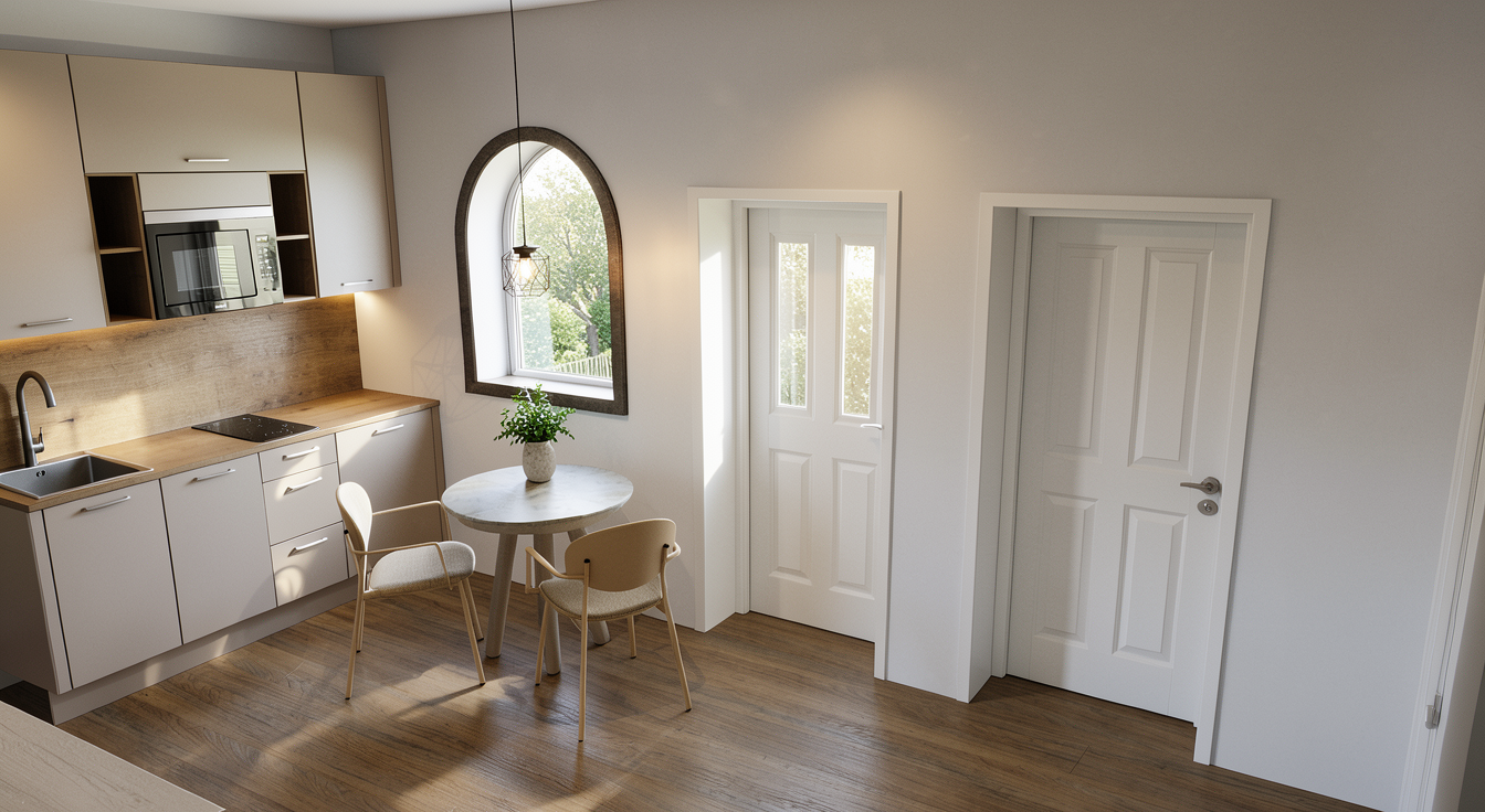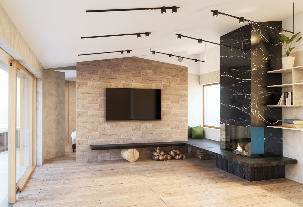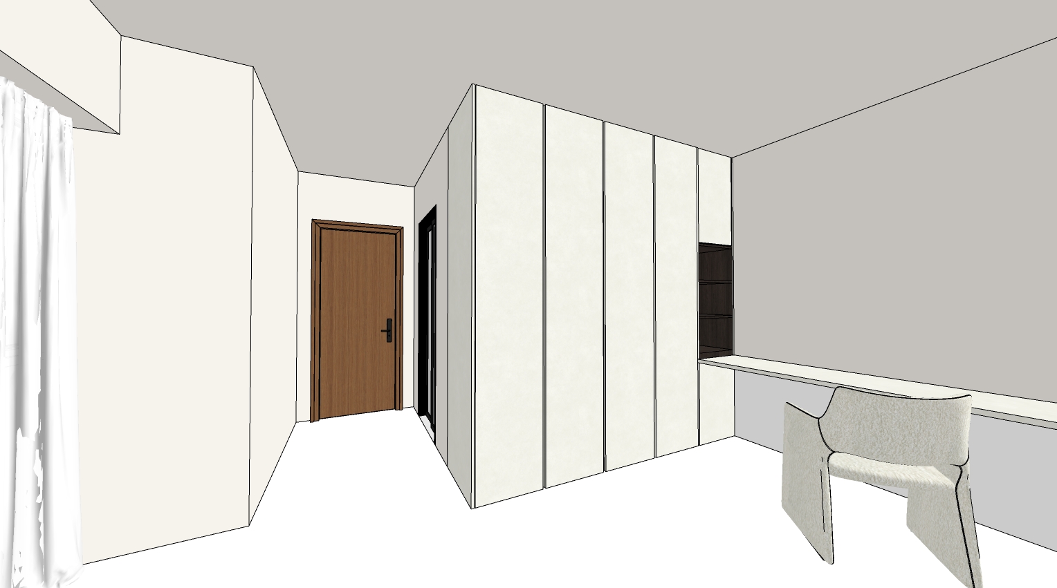 add some ceiling down lights a small vanity mirror and some cosmetic products on the table floor tiles should be 60x60 matte biege wall paint should be swiss coffee
