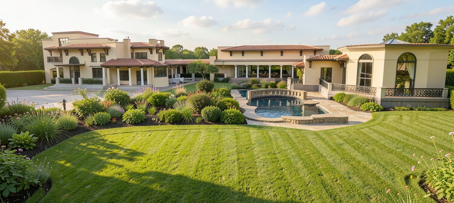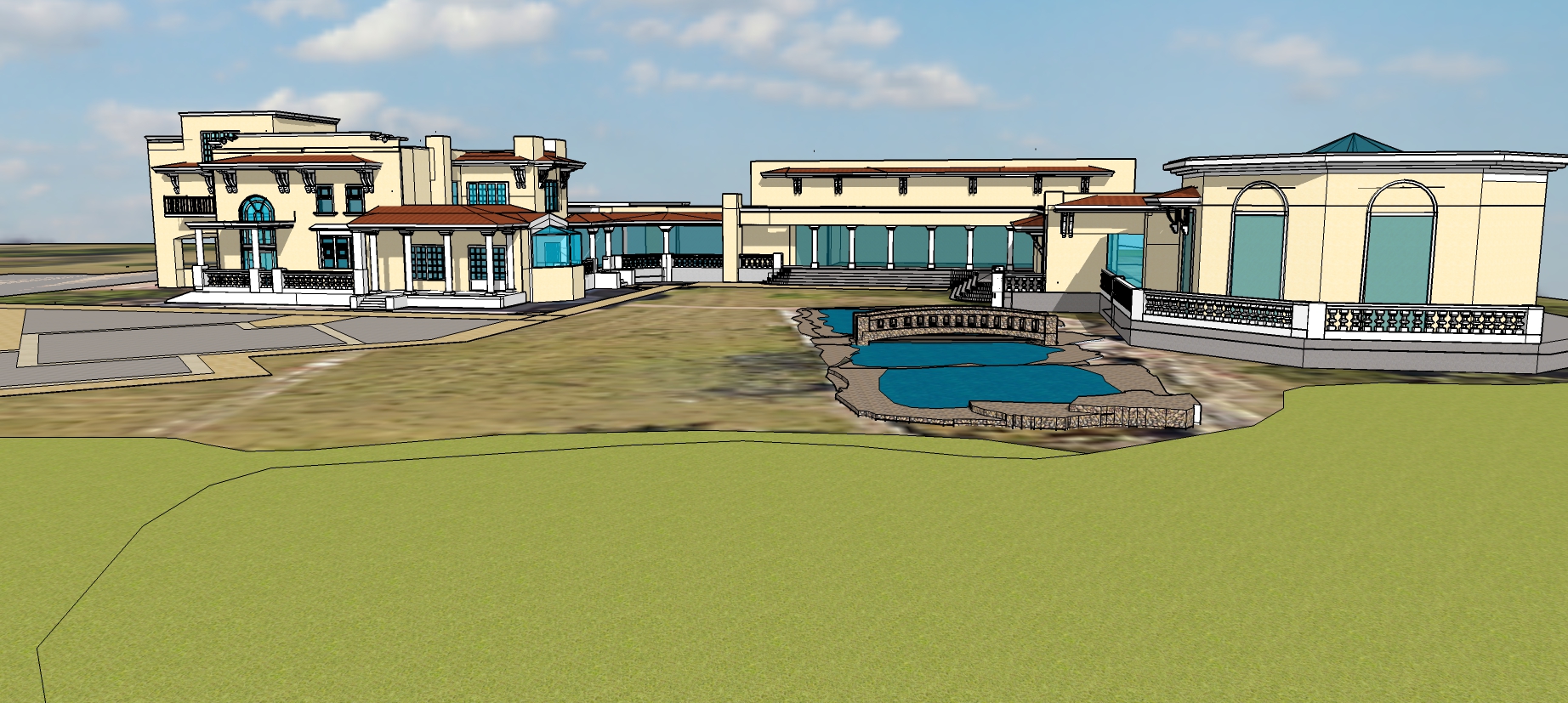 english garden less flowers all grass around pond area no flowers