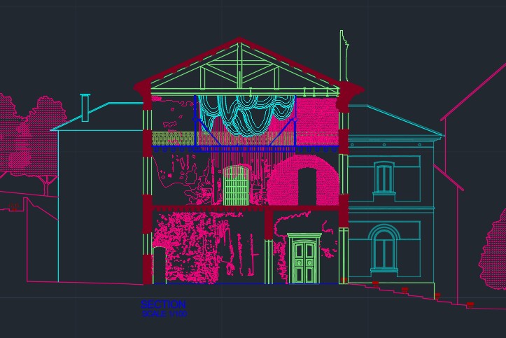 can you make a perspective view from the ex asilio rossi building i want to look industrial architecture