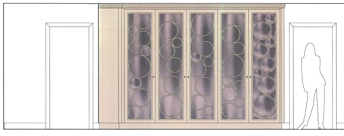 use this elevation to create a photo realistic render mirror doors and circular fretwork as drawn