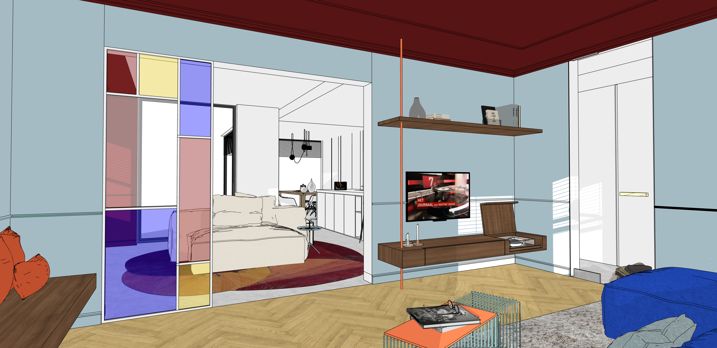 make this sketchup interior look realistic keep the right door closed keep the sofa
