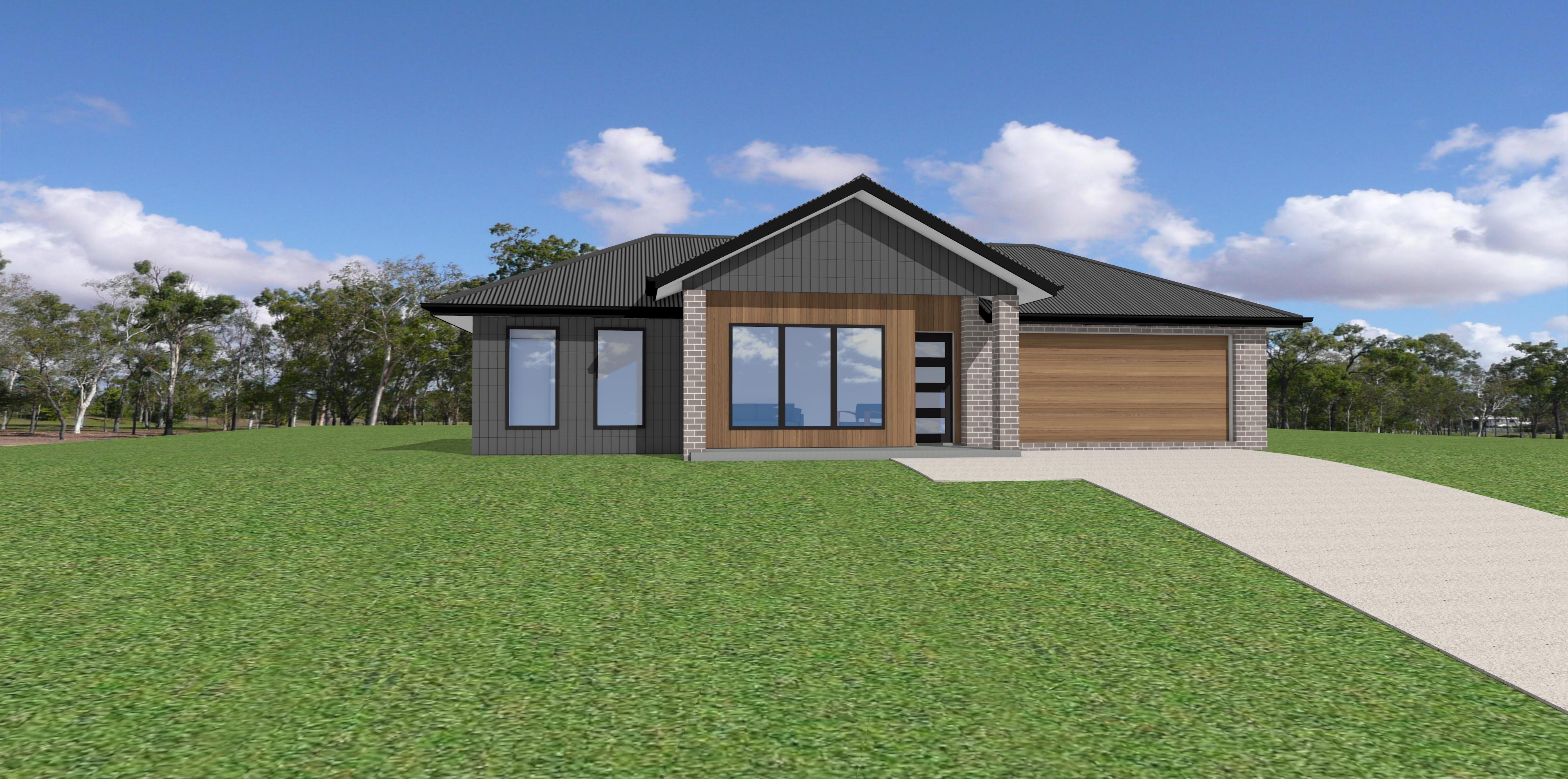 modern alpine look grass lawn with feature garden beds with australian native plans and background semi reflective glass
