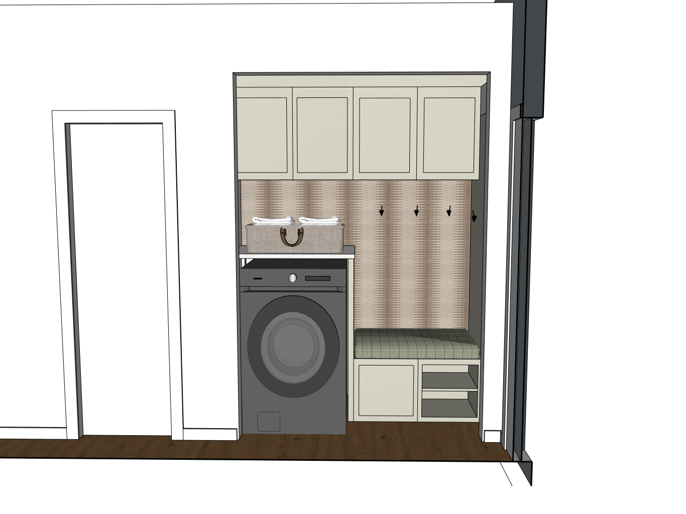 create a photo realistic image with natural bright lighting but the space is in the hallway keep textures and colors the same keep patterns the same