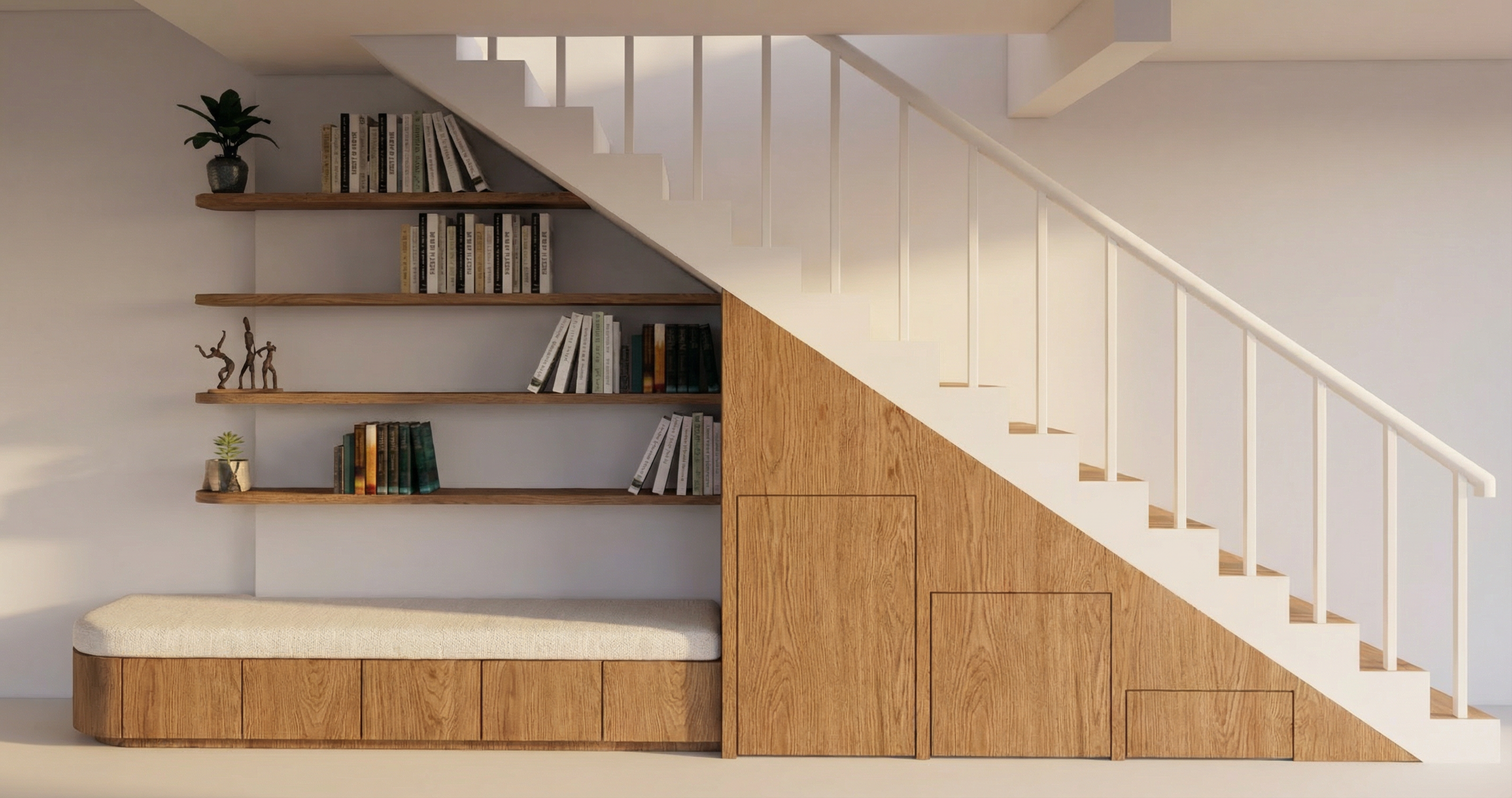 make ultra realistic image without changing any structures shapes design and materials do not change the jpeg size wood vinyl flooring add sky light in the stair