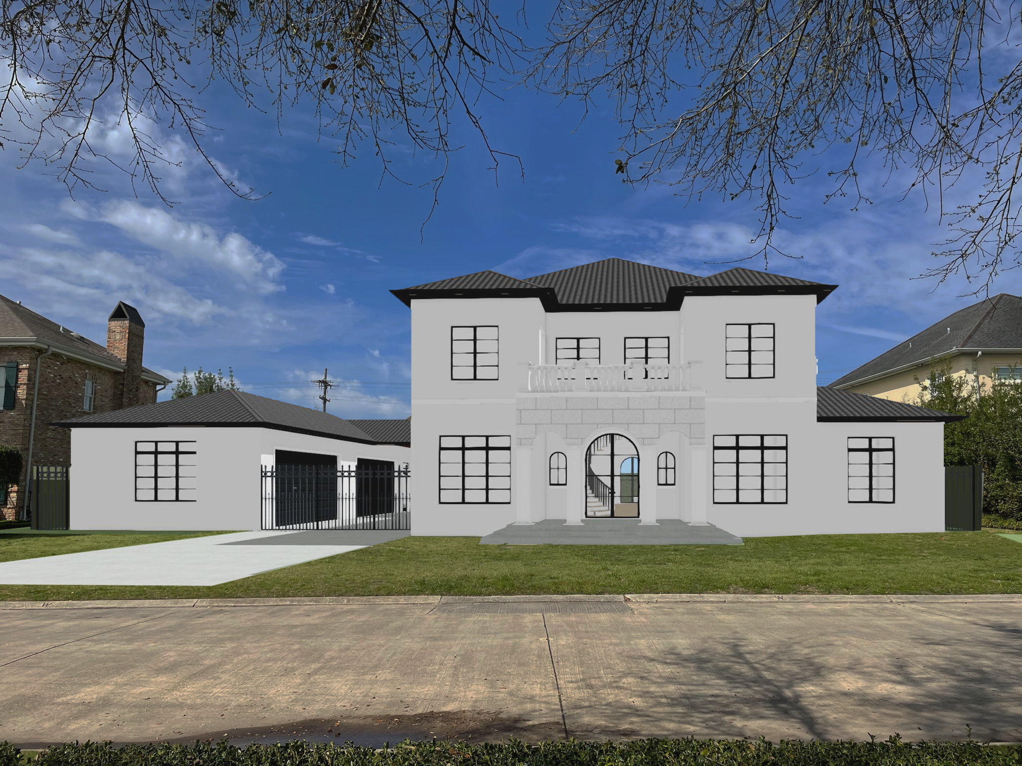 for the front make it stone like travertine above the columns