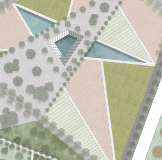 fai una vista render all altezza di un uomo che cammina all interno degli orti urbani a filari mantieni alberi e arredo come persone e panchine