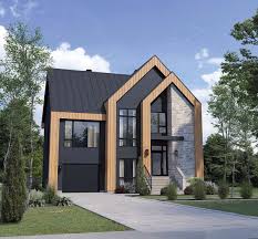 make the home narrower by removing the larger peak and putting the garage next to the smaller peak