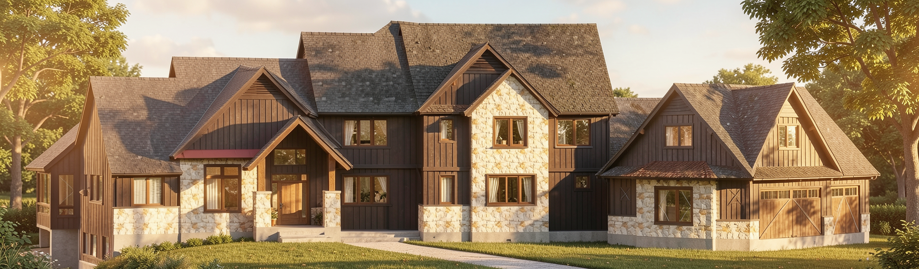 render a photorealistic 3d perspective of this house keep the current materials just enhance them split face limestone walls cream stone floors keep model geometry the same windows doors roof walls do not add new furniture enhance the current materials and make the landscape nicer vegetation detailed textures and a vibrant clear sky with a few clouds add slight lens flare slight atmospheric depth render in hyper realistic architectural visualization quality 8k resolution