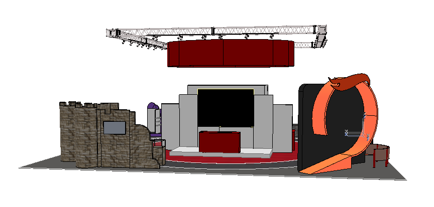 trade fair exhibition hall large industrial pavilion with high ceiling overhead truss lighting system led spotlights busy fair atmosphere with visitors in background other stands visible in distance concrete floor with booth carpet realistic photography style natural and artificial mixed lighting sharp details photorealistic render 35mm lens depth of field