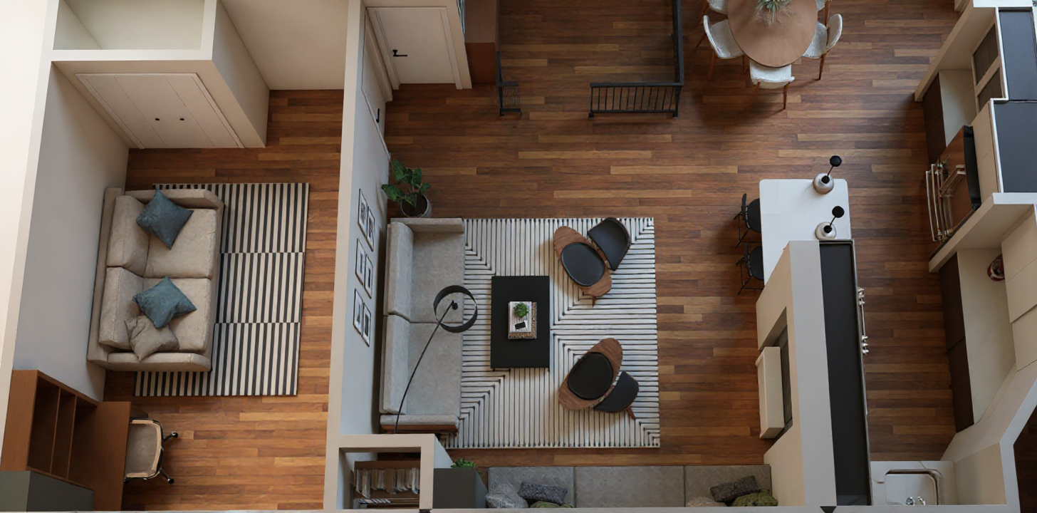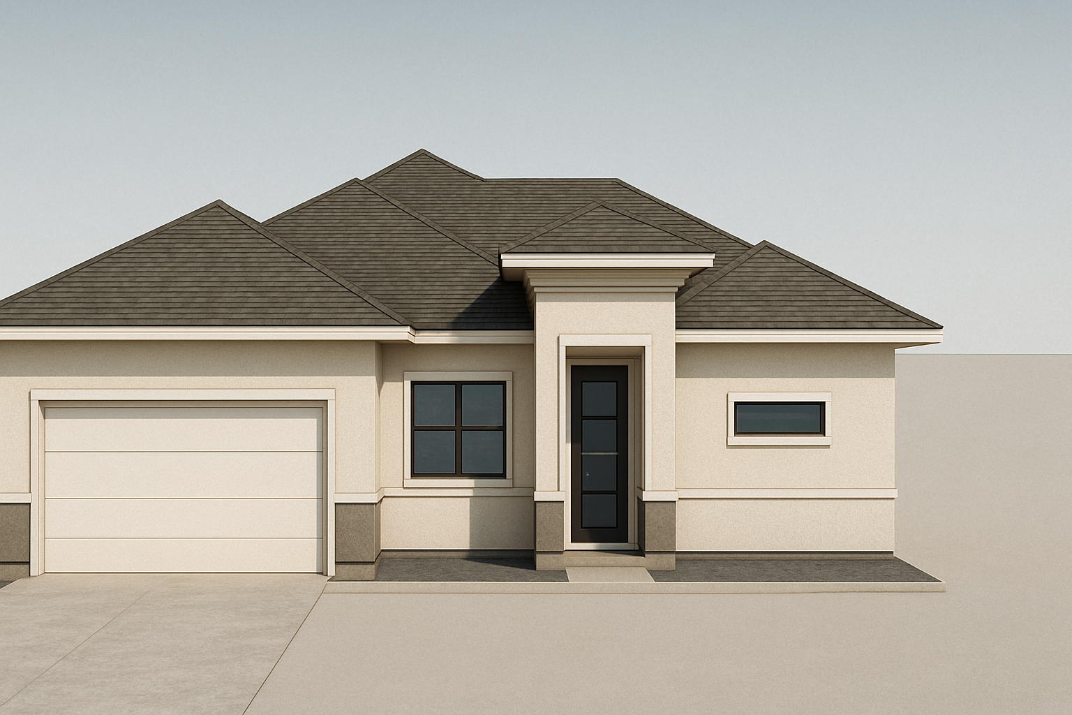 looking to make this rendering more realistic keep all same materials finishes add some trees in the background add grass where dark brown