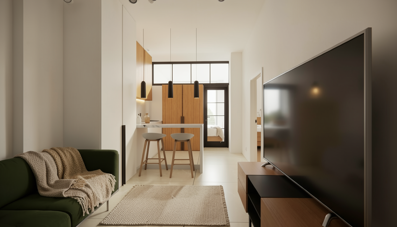 analyze the provided floor plan walls are shown has black all windows are started from ground level generate the provided auto cad style 2d residential floor plan into a high quality 3d isometric top down true 90 orthographic architectural photorealistic rendering floor plan of the entire apartment keeping the exact same dimensions proportions walls doors windows and furniture placement as shown present lift zone as elevator keep entry hall with elevator and stairs empty do not change layout scale or orientation style interior modern japanese japan with a soft neutral color palette of beige cream and light wood tones light natura warm neutral tones beige off white soft grey minimalist furniture clean lines built in cabinetry stone or microcement surfaces matte black accents furnish the existing rooms in a modern aesthetic elegant interior light soft ambient interior lighting and soft natural daylight with subtle shadows architectural visualisation distortion no added or removed elements keep the tops of the walls cleanly cut and white to show the layout clearly