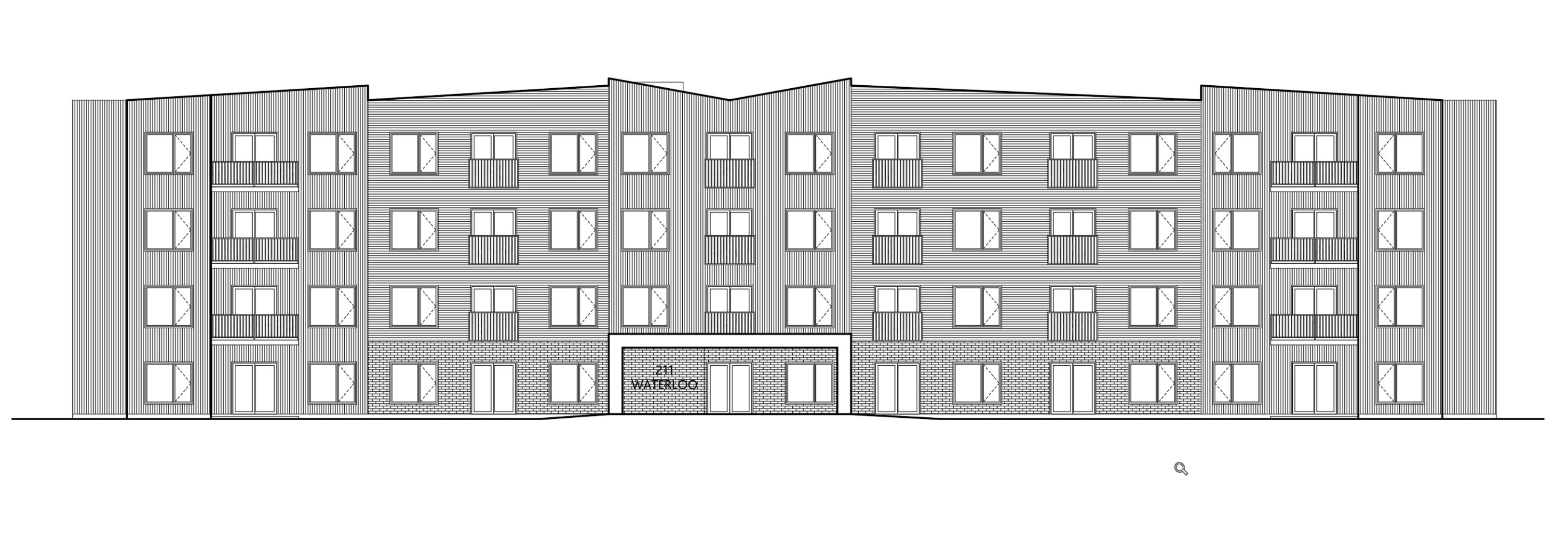 vertical cladding to be beige brick area on the bottom to be red brick horizontal cladding to be tan and entry canopy to be red brick colour
