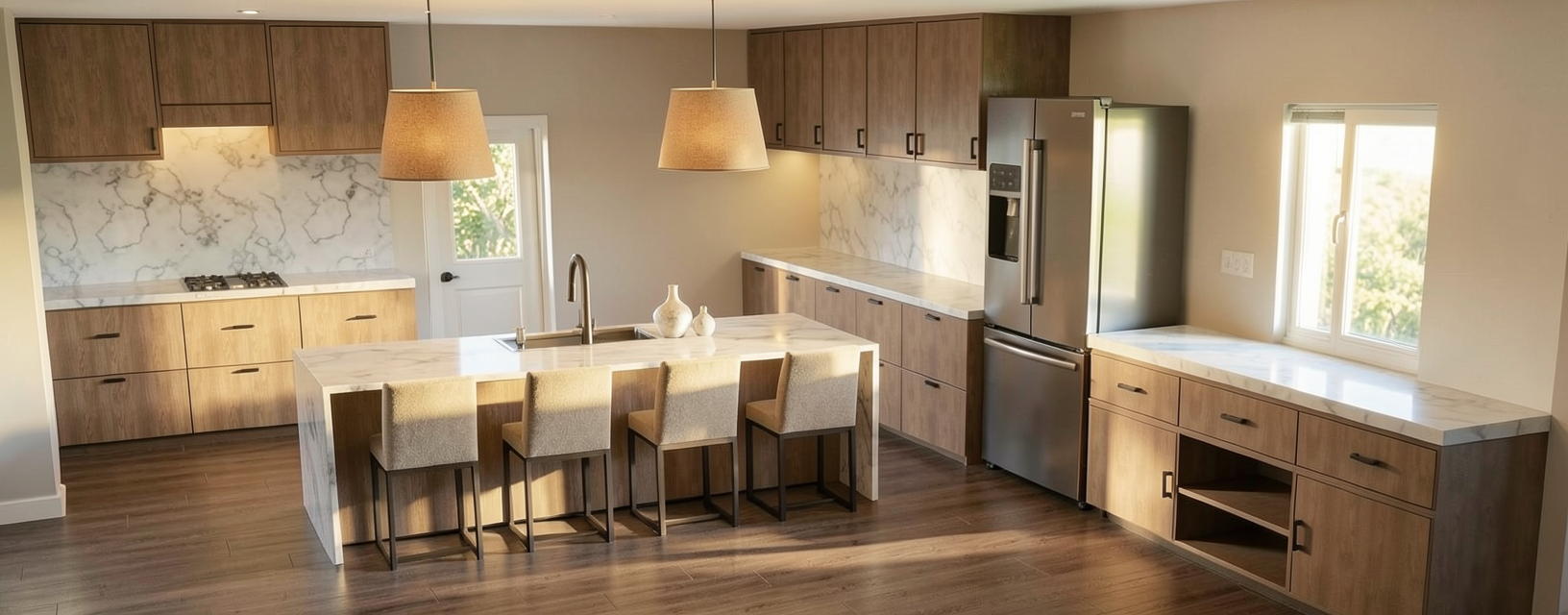 convert this floor plan into a realistic isometric 3d view of a full house show the space from an elevated angle with furniture walls and details visible farm house natural colors for cabin look use the same furniture as shows on the plan do not change the orientation of the floorplan