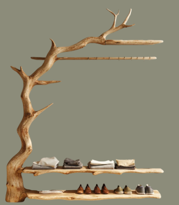 this is a tree shaped rack with a rod for hanging clothes and shelves for folded clothes