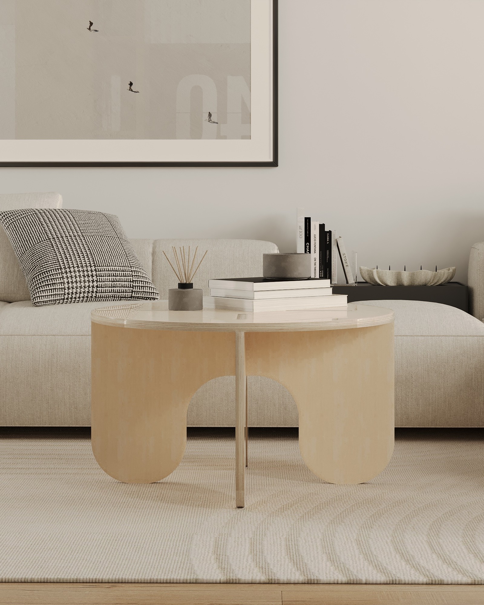have christmas themed items on the coffee table keep the coffee table in the foreground and let the christmas spirit come to life in the photo