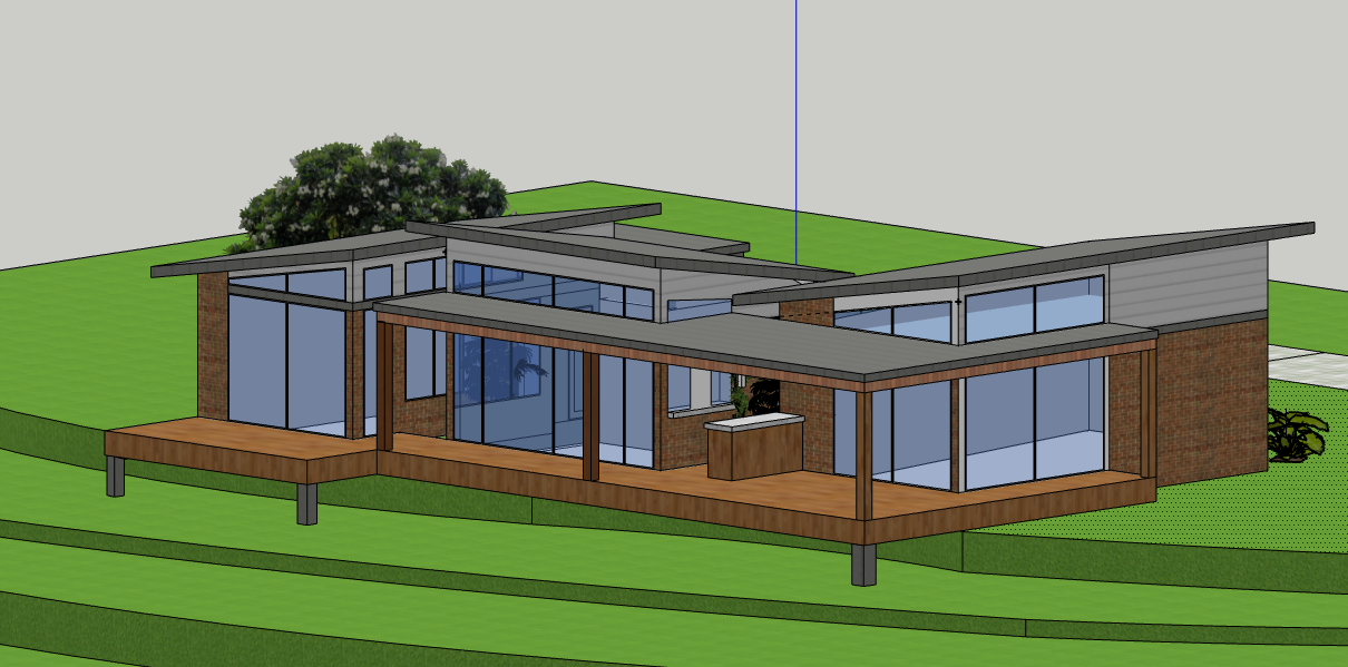 modern exterior shot mountain cottage with 3 seperate modular spaces architecture