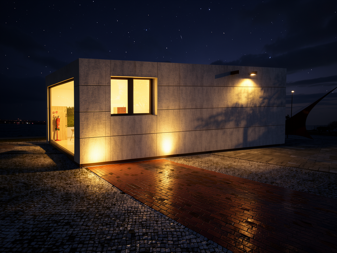 minimalism exterior shot modern house white siding black windows gray shingle roof blue sky with clouds green lawn premium landscaping architecture architecture